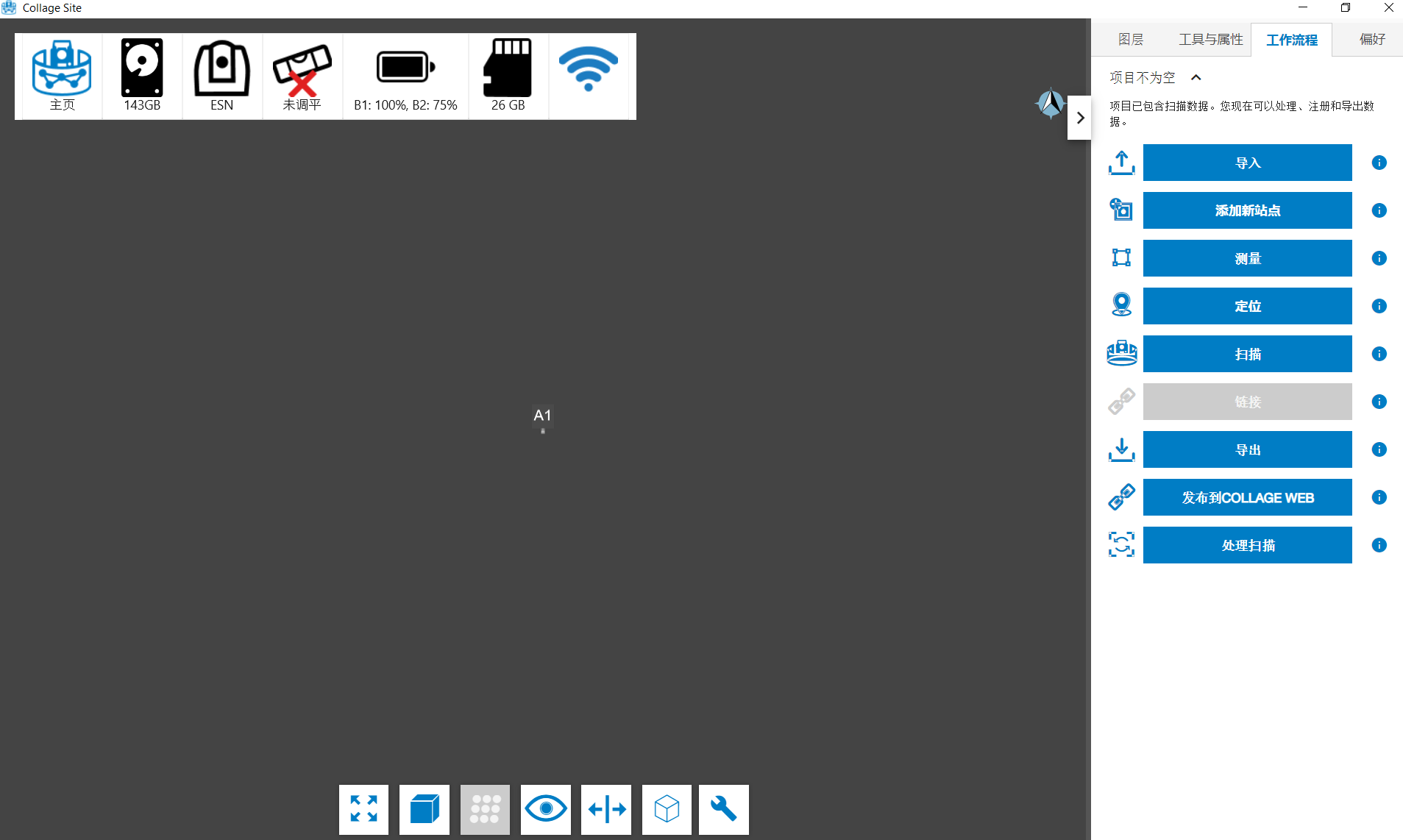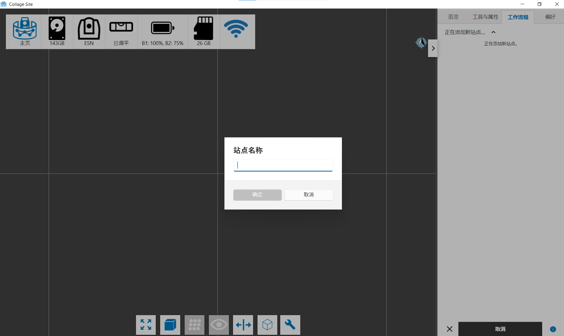 C在Collage Site中采集扫描数据,首先需要创建一个新的站点。站点是您在仪器设置地点收集的所有信息的容器。在本手册中,“设置”和“站点”可以互换使用。请按照以下步骤创建新的站点: 如果您没有连接到仪器,则无法使用此选项。如果您已连接,则需要点击右侧工作流程面板中的添加新站按钮。