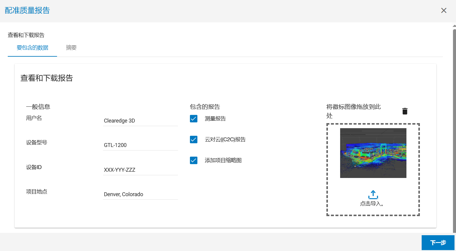 指定一般信息并选择要包含的报告类型。如果选中添加项目缩略图,屏幕上项目查看器的当前视图将保存为该报告的徽标图像。如有必要,您还可以设置徽标图像文件。最后,您可以点击屏幕右上方的下载按钮,将报告下载为 HTML 文件。