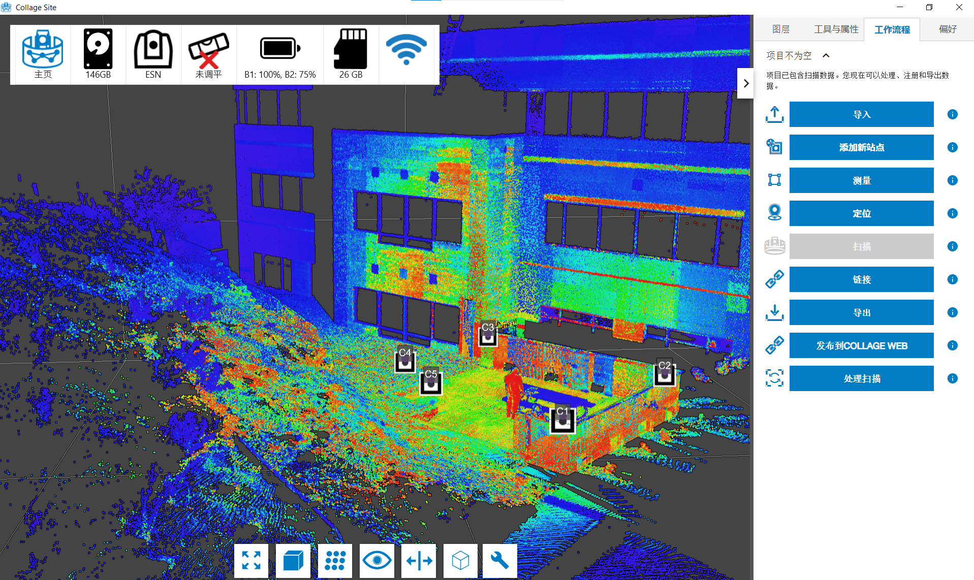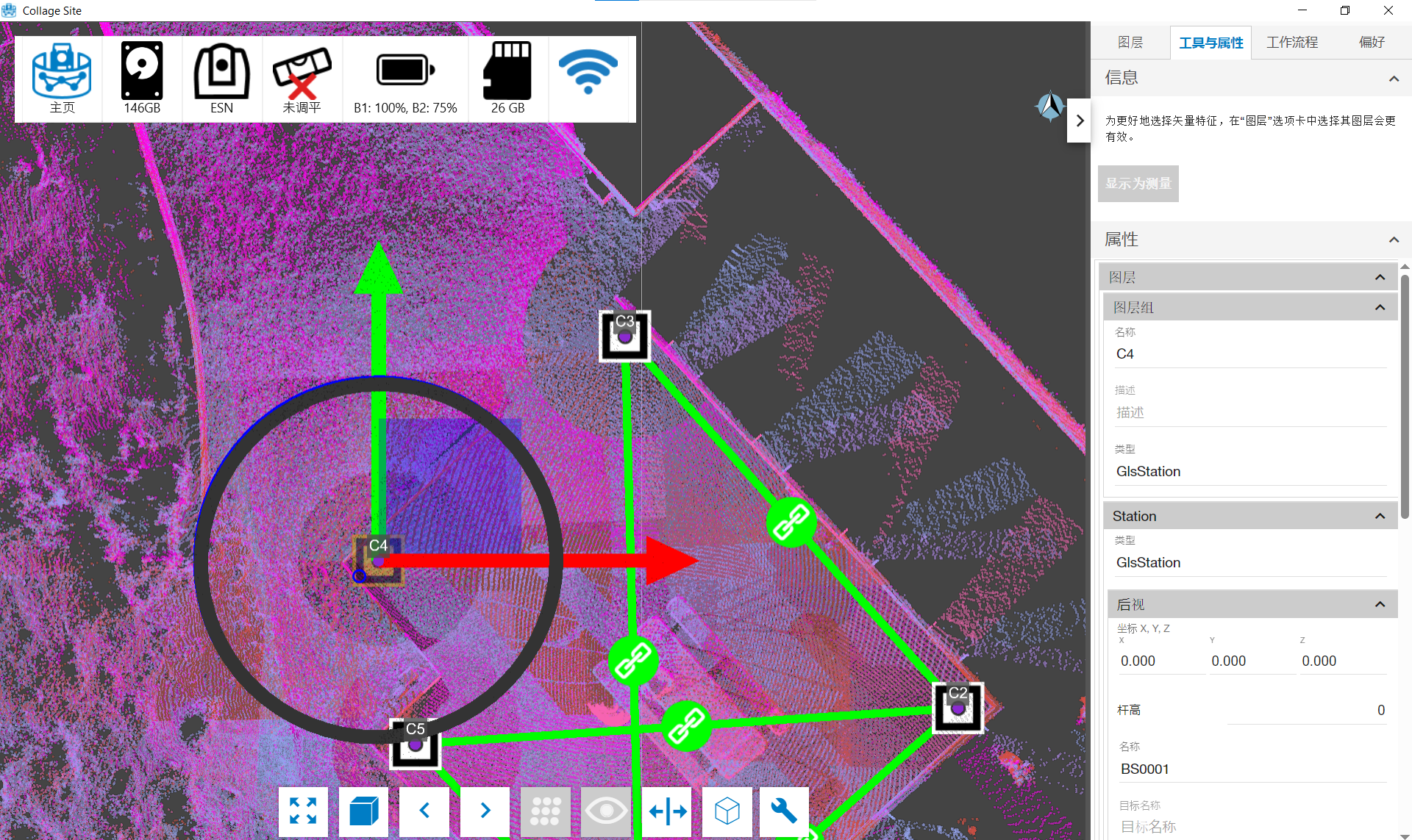 进入可视对齐模式后,您将看到按扫描着色的点,如下图所示,您可以通过选择点或站点标记来选择站点。