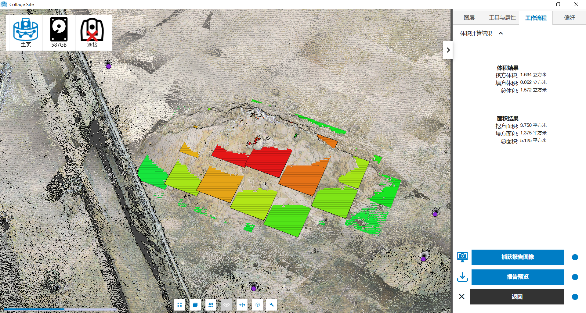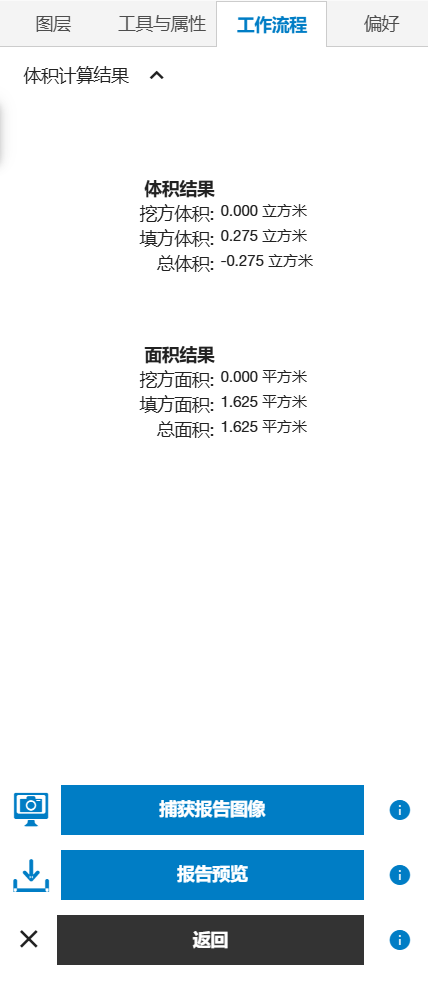 在堆积工作流程中,您可以计算所选位置的总面积和总体积。