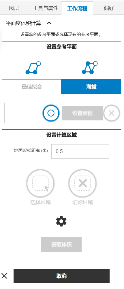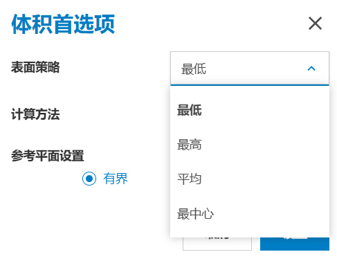 最低 此设置将使用点云中的最低海拔点作为参考。最好在需要体积位于植被等物体下方时使用。