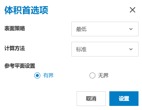 对于无边界平面,将计算选定区域内所有区域的体积。