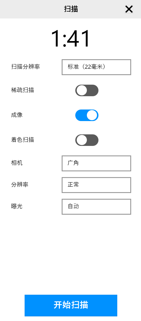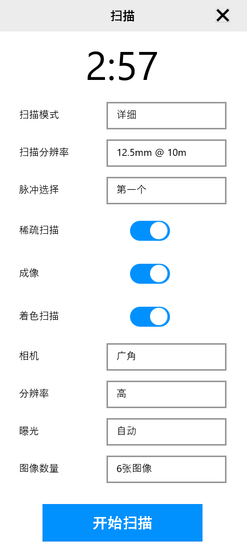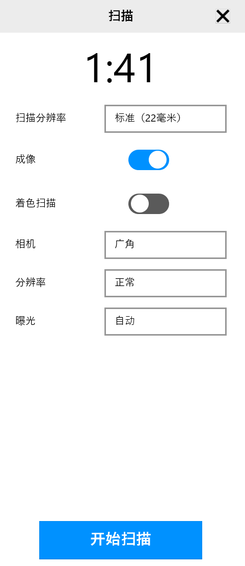 若希望处理后的扫描结果带颜色,请开启扫描上色开关。请注意此设置会延长扫描处理时间。您可在现场关闭此设置,后续再重新处理扫描以添加颜色。