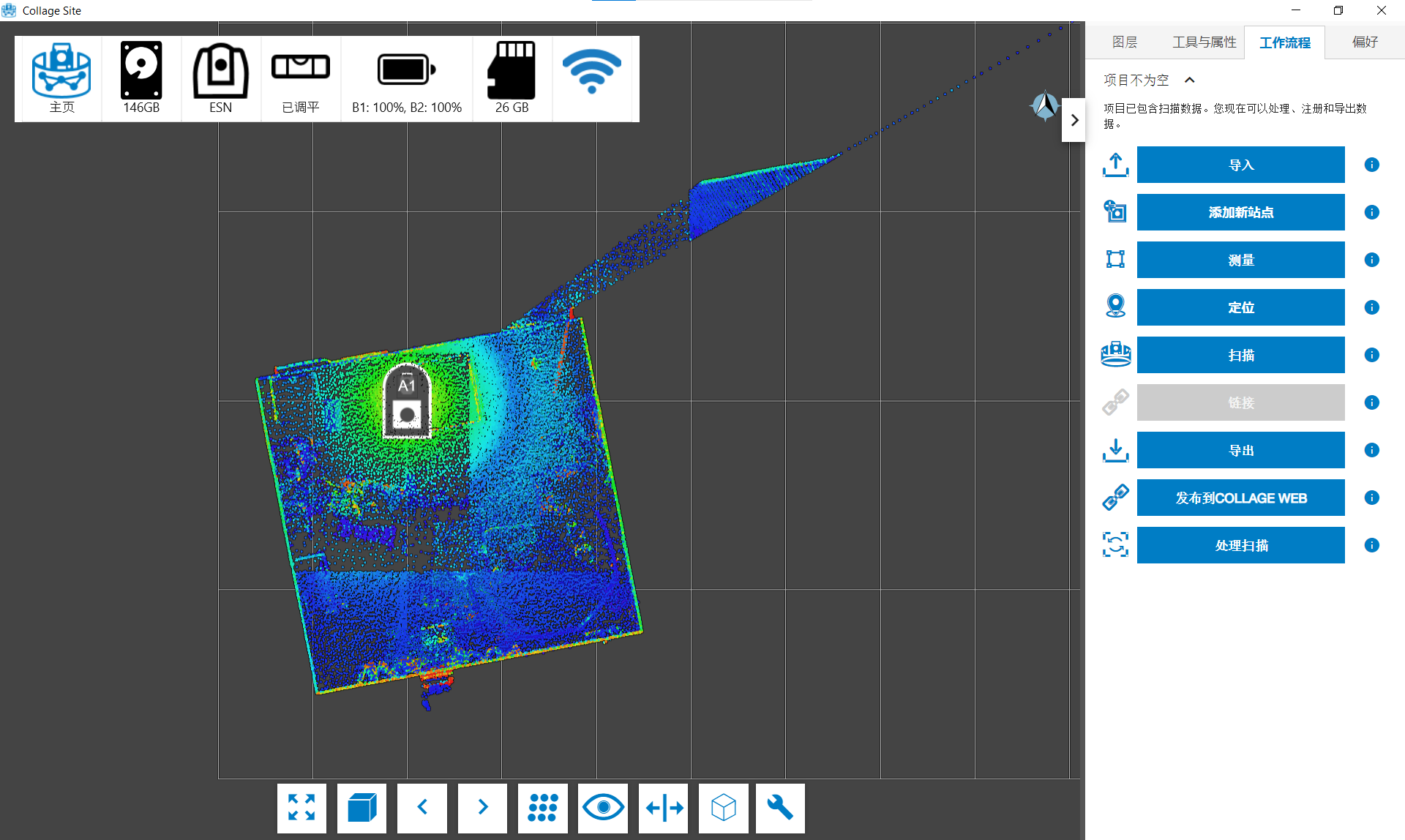扫描数据完全传输后,Collage Site将开始处理扫描数据,以便进行注册和查看。首先将处理站点数据,然后处理扫描数据,以便您可以查看它们并将其用于云到云的注册。
