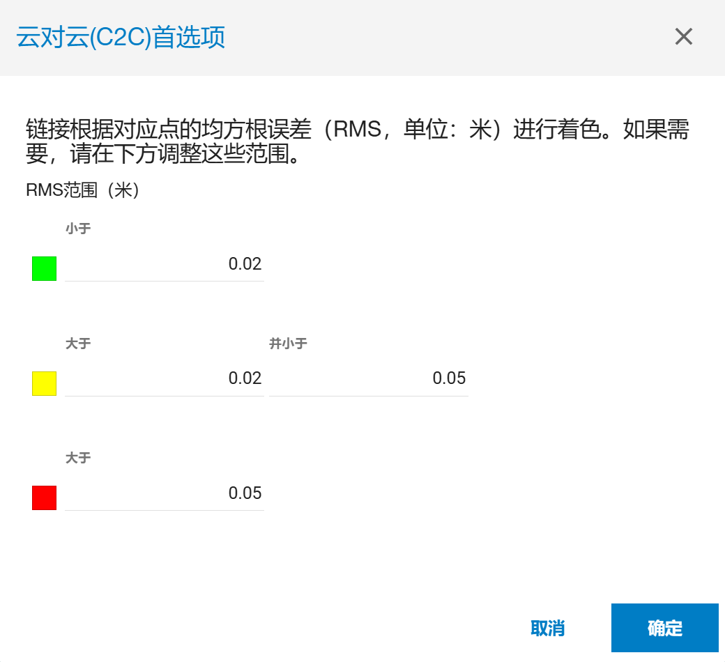 链接的颜色由相应点的RMS误差决定。您可以通过点击主链接菜单中的