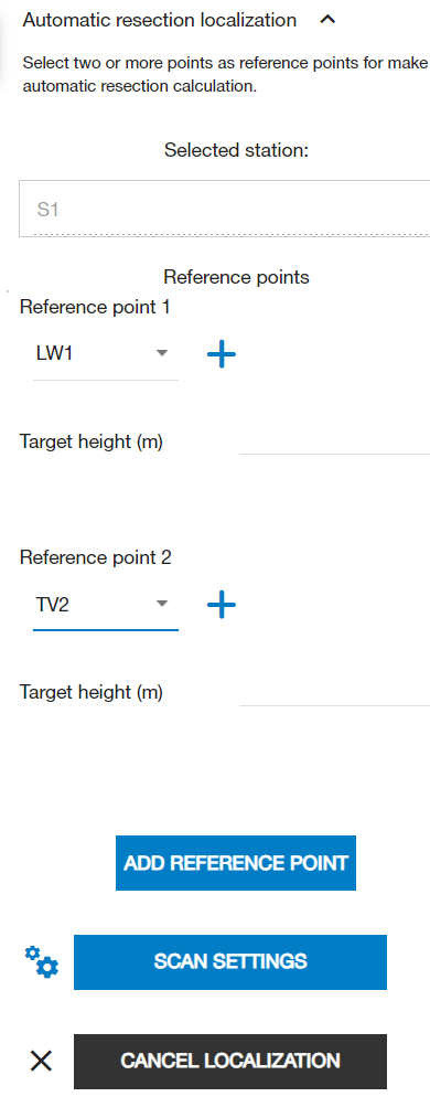 Once you have selected the control points and filled the height field, tap the SCAN SETTINGS button to proceed.