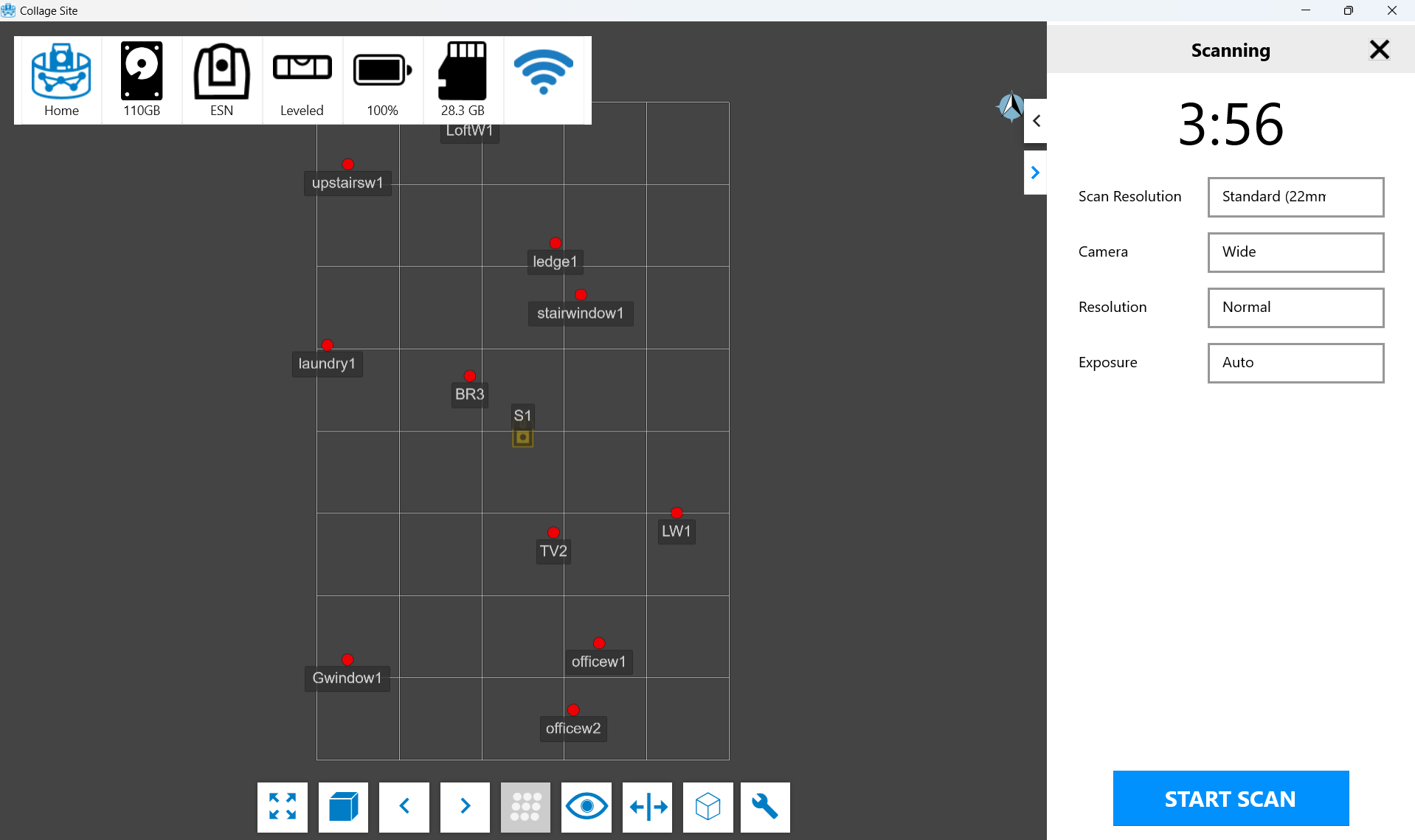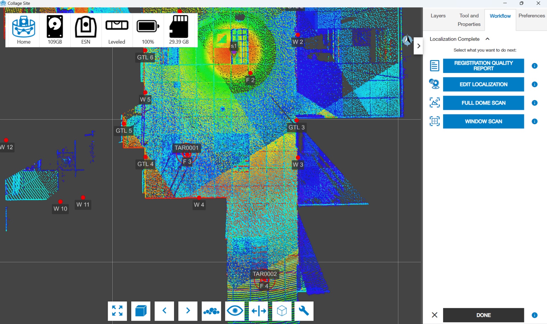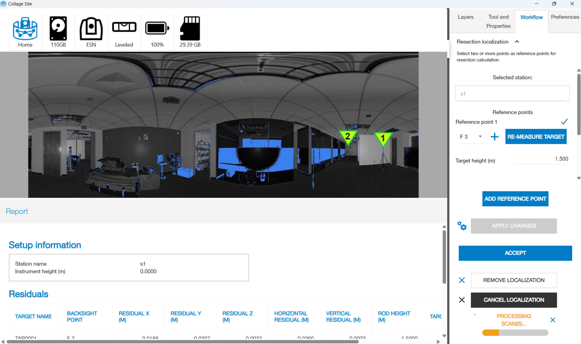 Once you have edited the localization, tap the APPLY CHANGES button to run the resection with the new parameter changes you have made. If no editing is required, tap the ACCEPT button. Once the scan processing is complete, the point cloud data will be displayed on the view.