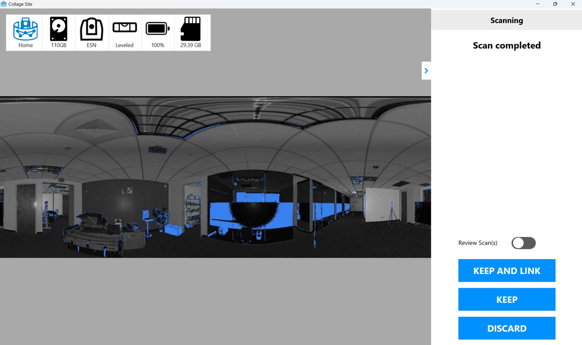 Once the scan has completed you will be brought to the Keep or Discard screen. Tap either KEEP or KEEP AND LINK to proceed. Once you proceed, the resection process will begin. Once it has completed the results will be displayed.