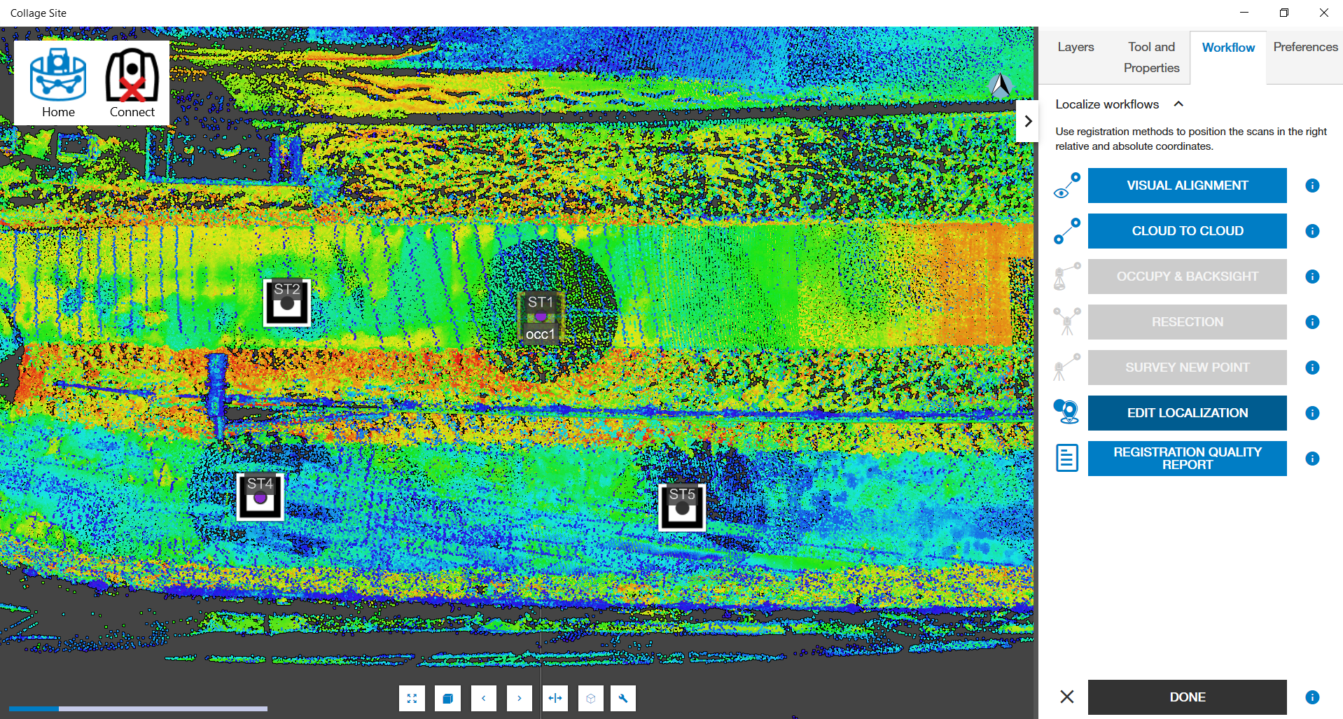 Stations that have been previously localized but may have a mistake in either the settings used, or the control points mapped to the scanned targets, can be edited in order to correct these mistakes and get a better localization.