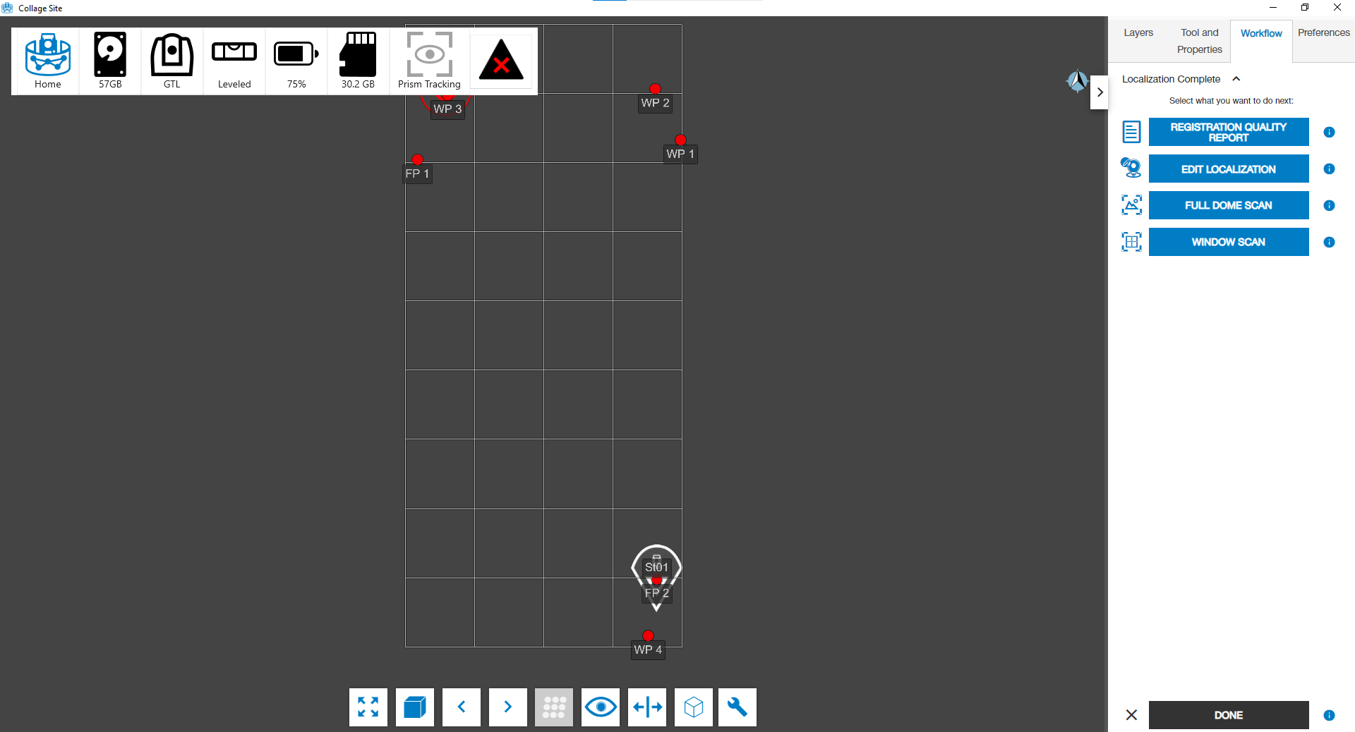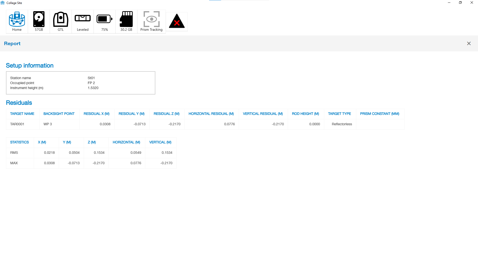 Once you have measured the backsight point, tap the Localize Station button to run the localization process. After the process is complete, the Registration Quality Report will be viewable.