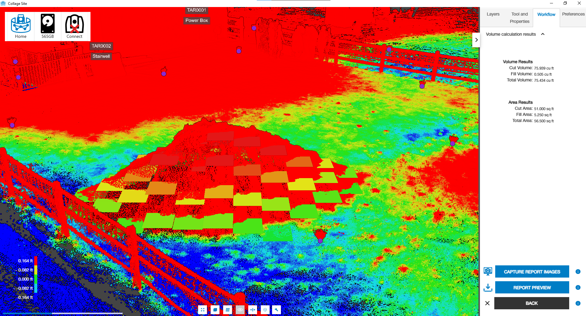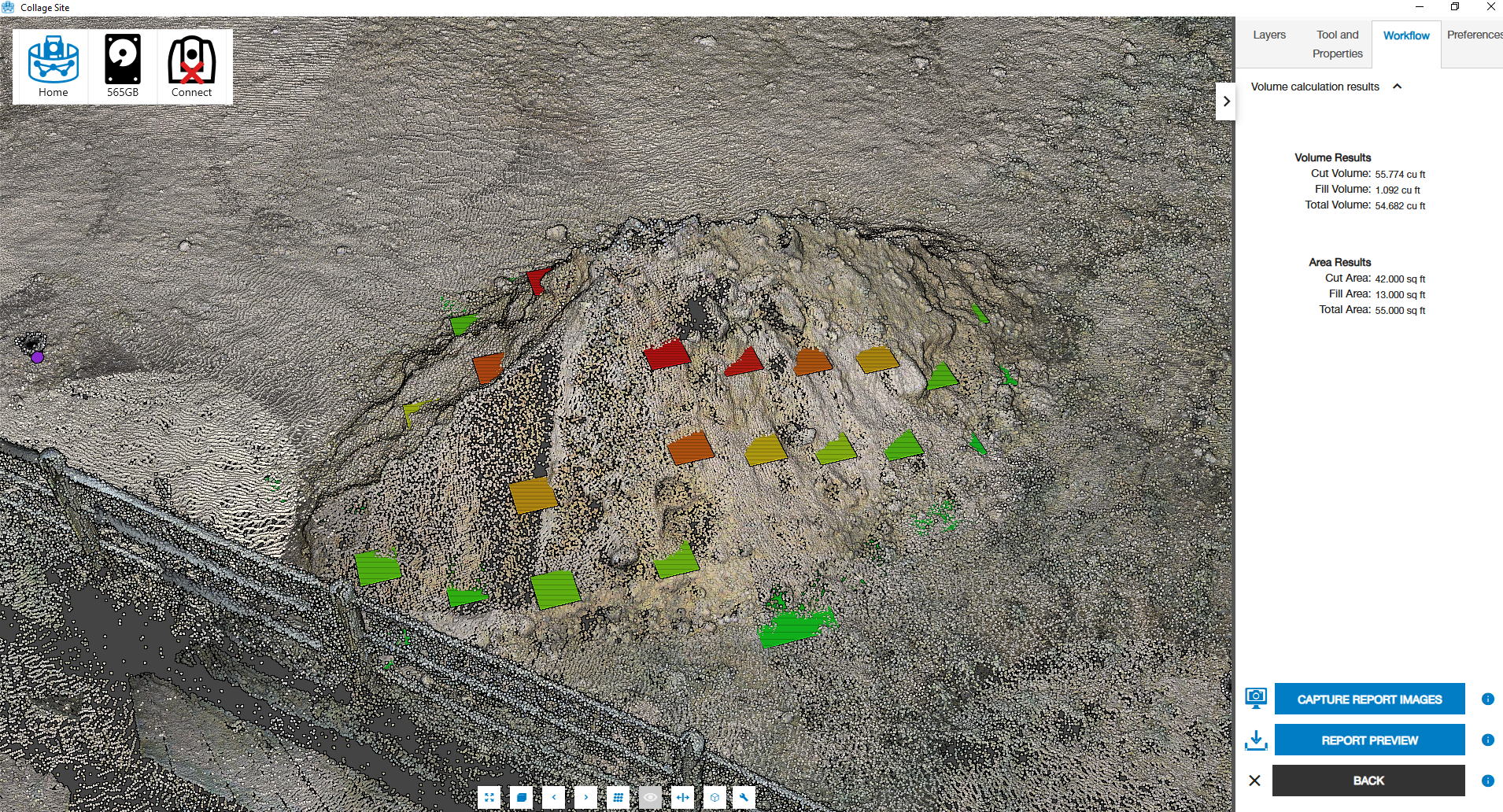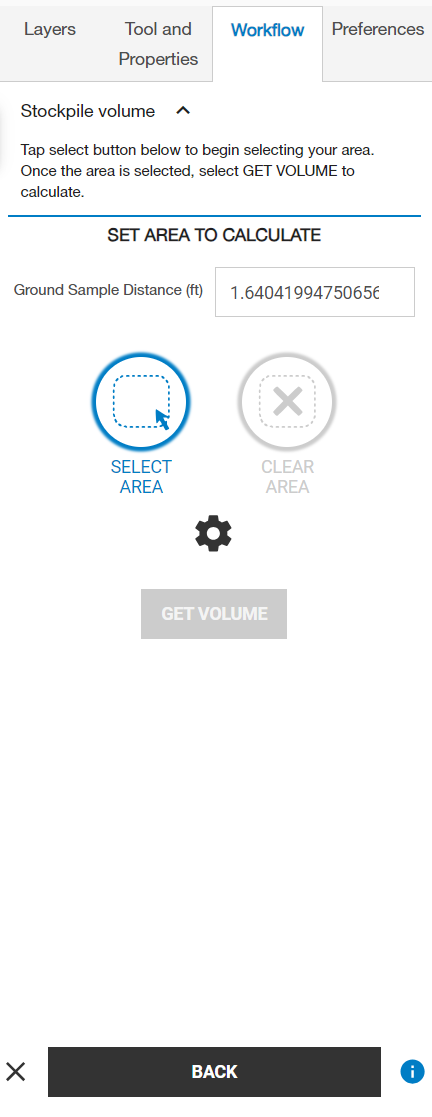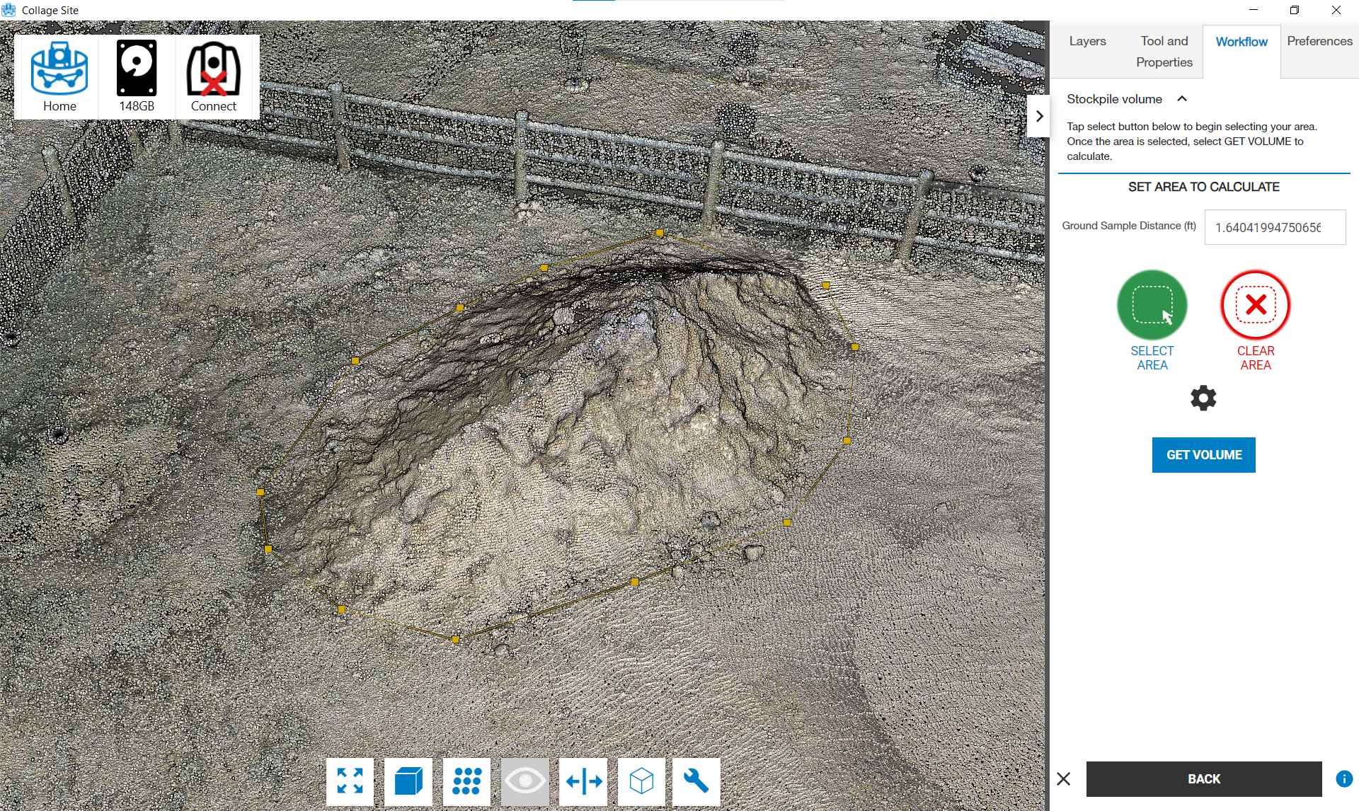 Inside of the Stockpile workflow you can calculate your total area and volume of your selected location.