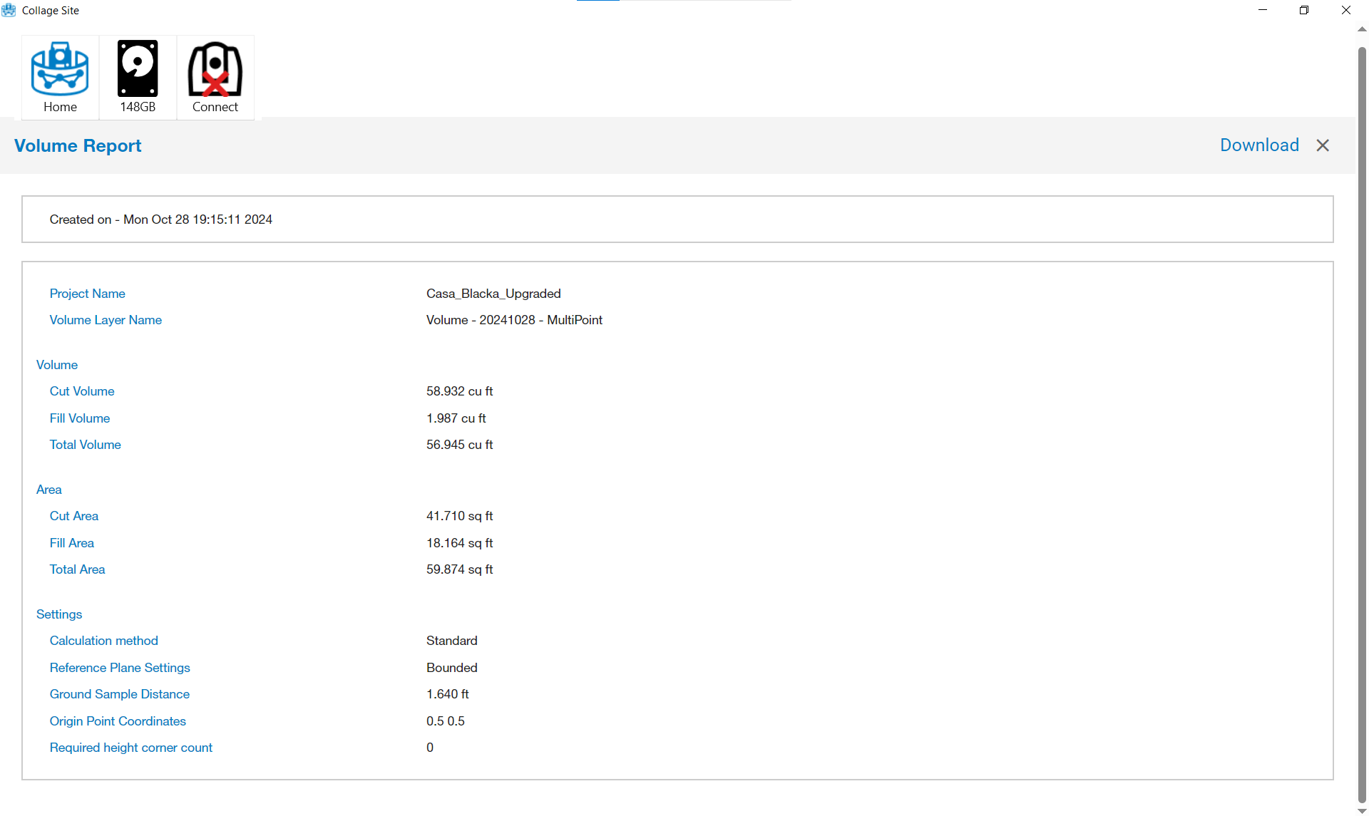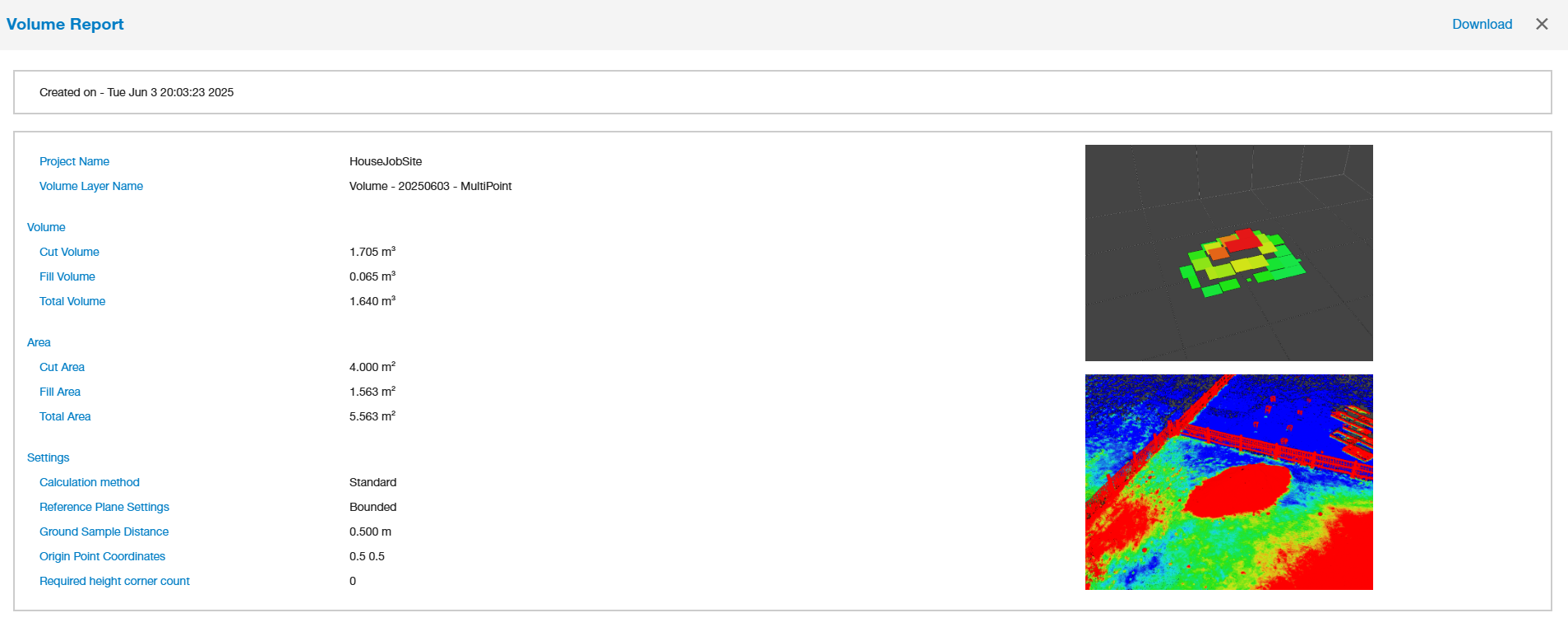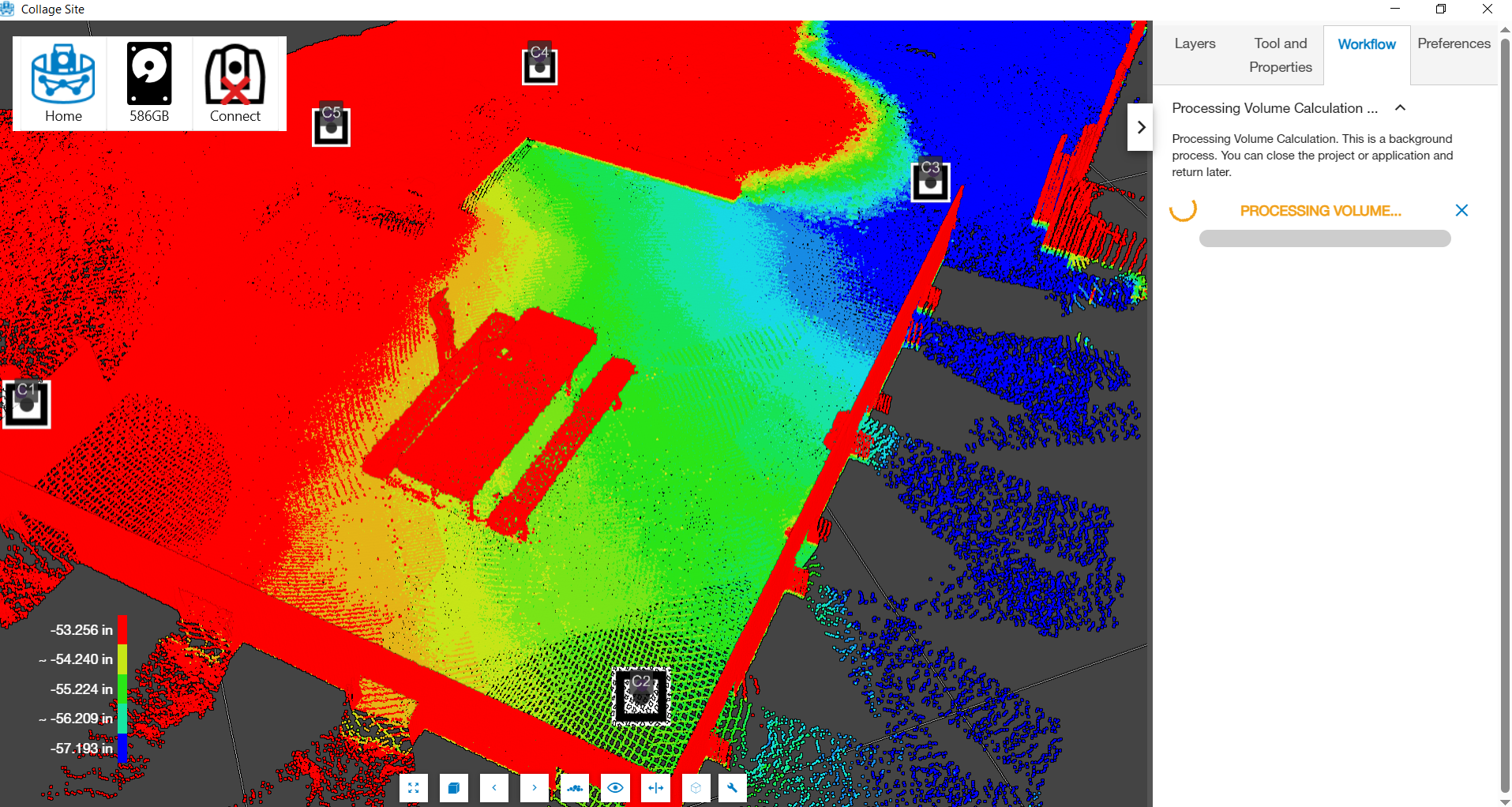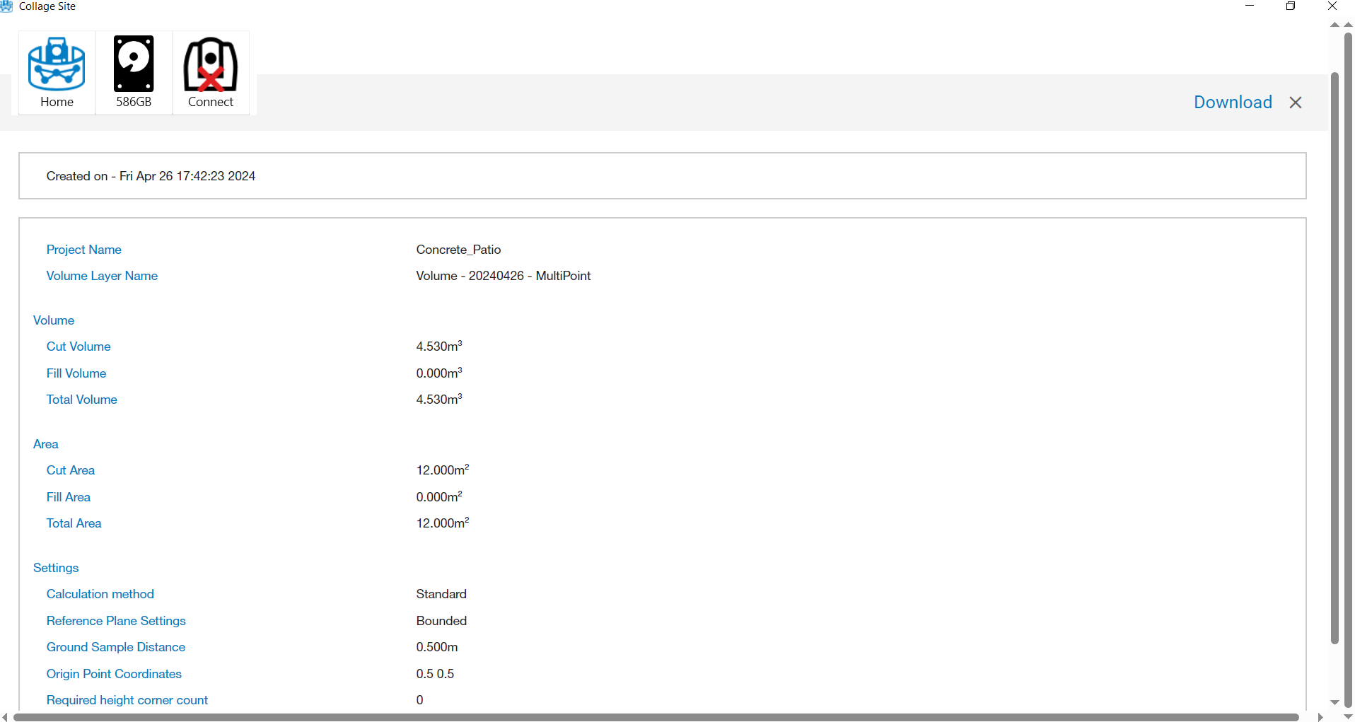 Inside of the Stockpile workflow you can calculate your total area and volume of your selected location.