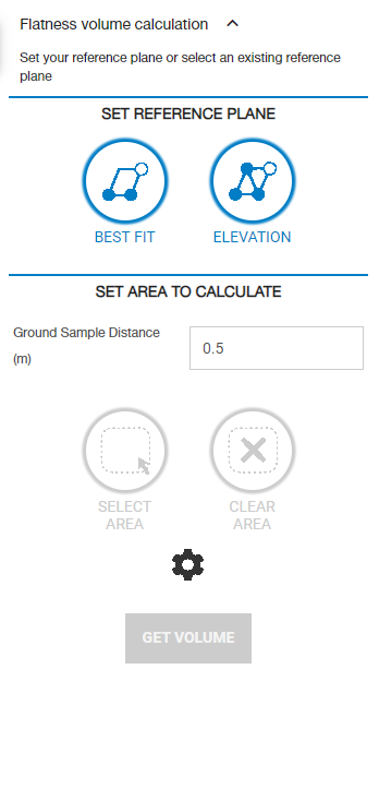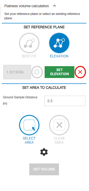 To do this you can either manually type an elevation value into the blank text box, or use the point selection button by tapping it and then tapping a point in your point cloud. Once the desired elevation reference plan is set tap SET ELEVATION. After the reference plane is established tap the SELECT AREA button if it has not been automatically selected for you. Using a series of taps draw a polygon around the location you wish to have your cut\fill volume calculated.