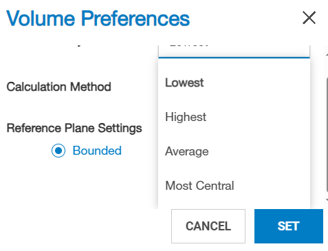 Lowest This setting will use the lowest elevation point in your point cloud as a reference. Best used when you need the volume underneath something, like vegetation.