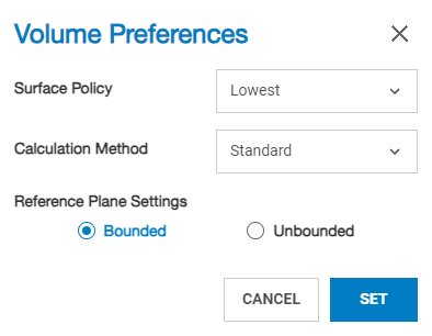 For unbounded planes, the volume will be calculated for all area within the selected area.