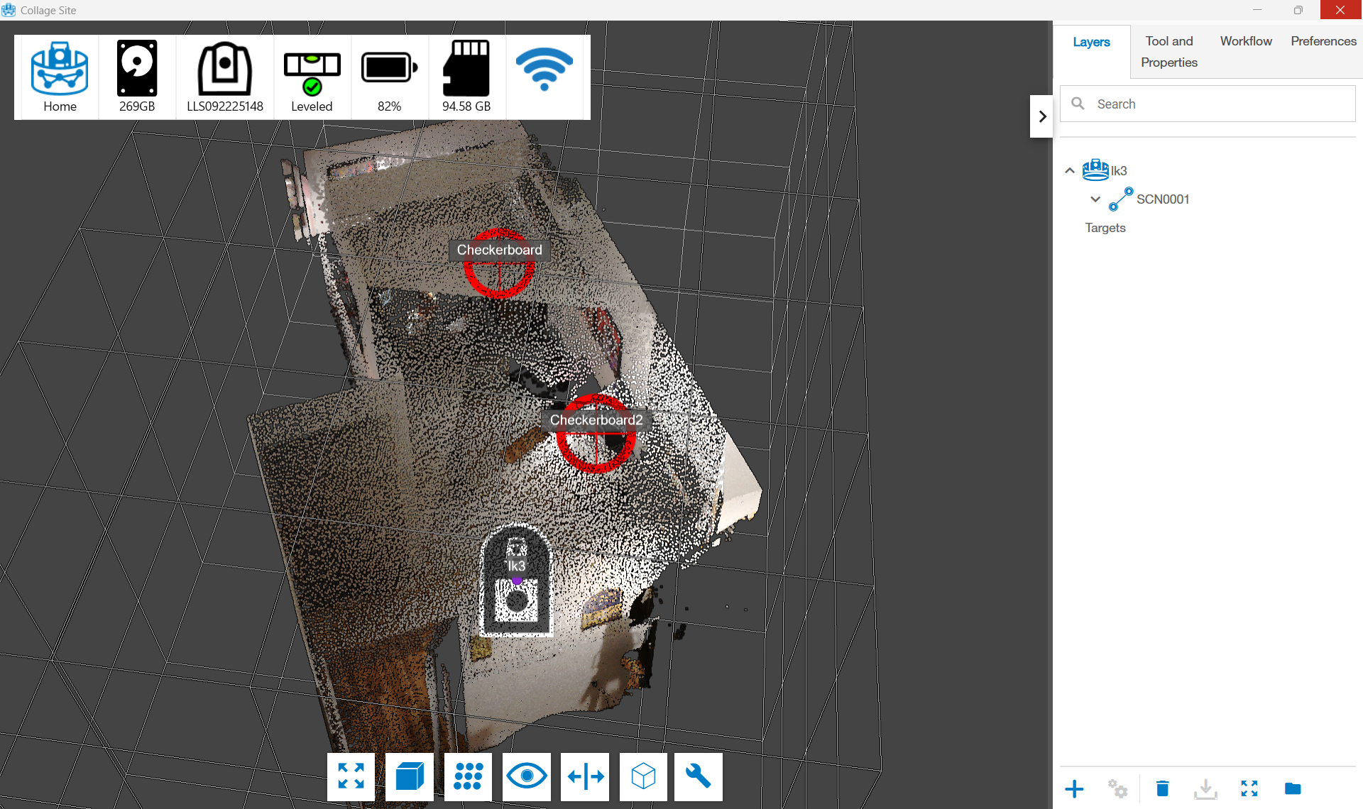 Notice in the screenshot below that there are two checkerboard targets in the room that I am scanning. You can use these automatically created targets for localizations or any other workflows that use them in Collage Site. Again, this feature is ONLY available when using the CR-P1 scanning instrument.