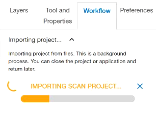 Progress will be shown while transferring the scan data. Transferring the data can take a long time and is influenced by the following factors: