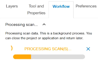 Once your scan settings are adjusted to your liking, press the Start Scan button in the right-hand menu. The instrument will rotate and begin the imaging and scanning process. Scan progress will be displayed in the progress bar at the top of the workflow panel. There are several stages the scanner will go through as it images and scans: