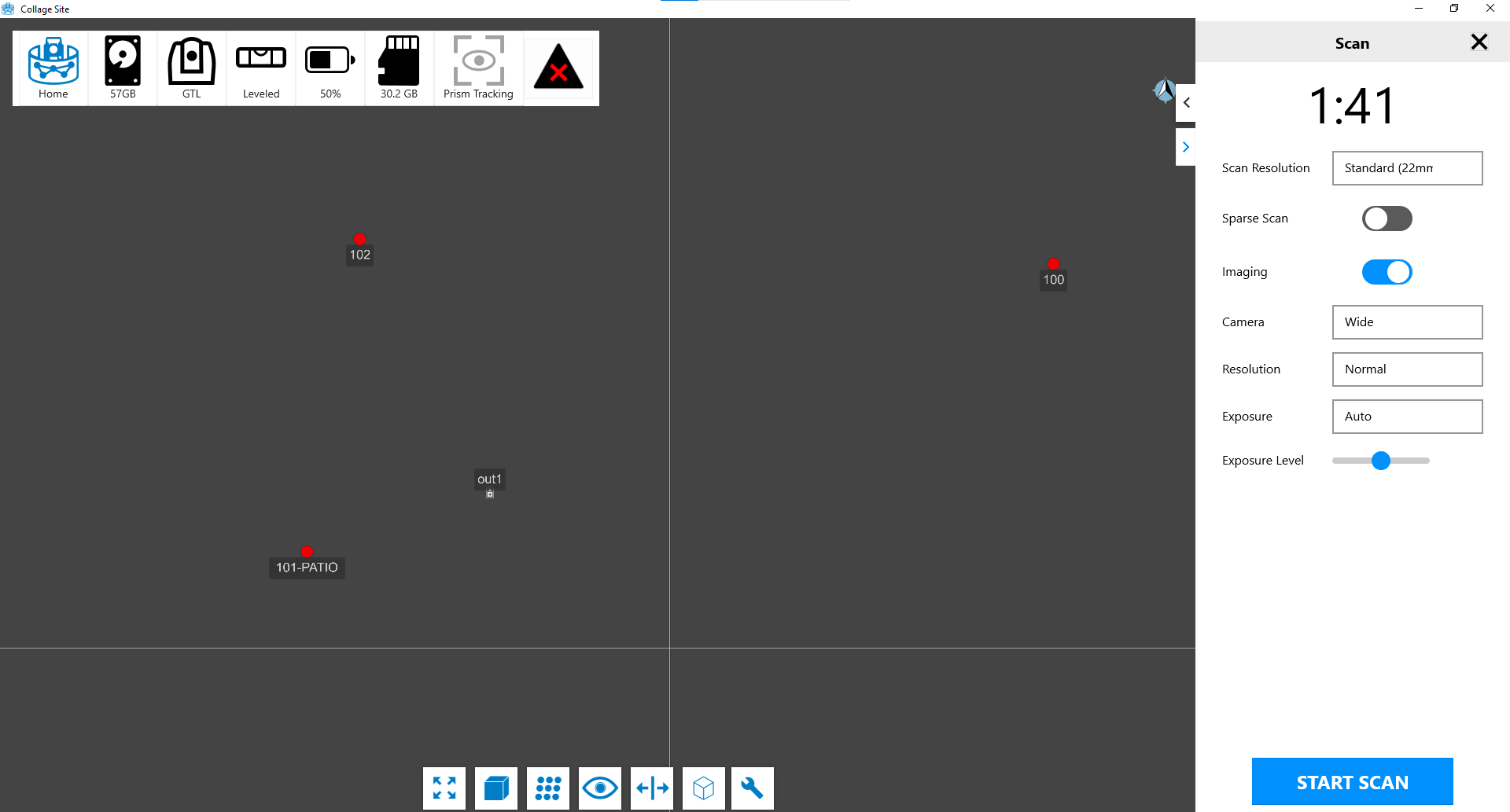 Collage Site has a new Sparse Scan toggle control. If you scan with a high scan resolution setting, the data size will increase and it will take longer to transfer and process the data. Sparse Scan toggle should be turned on for efficient in-field scanning workflow. Collage Site has this setting enabled by default when a scan resolution that takes a long time to transfer or process is set in advance, so normally you don’t need to change it. However, in environments where the WiFi signal strength is weak, please be sure to enable this setting, even for low resolution scan settings. Please note that the Sparse Scan option is NOT available with the ESN or CR-P1 instruments.