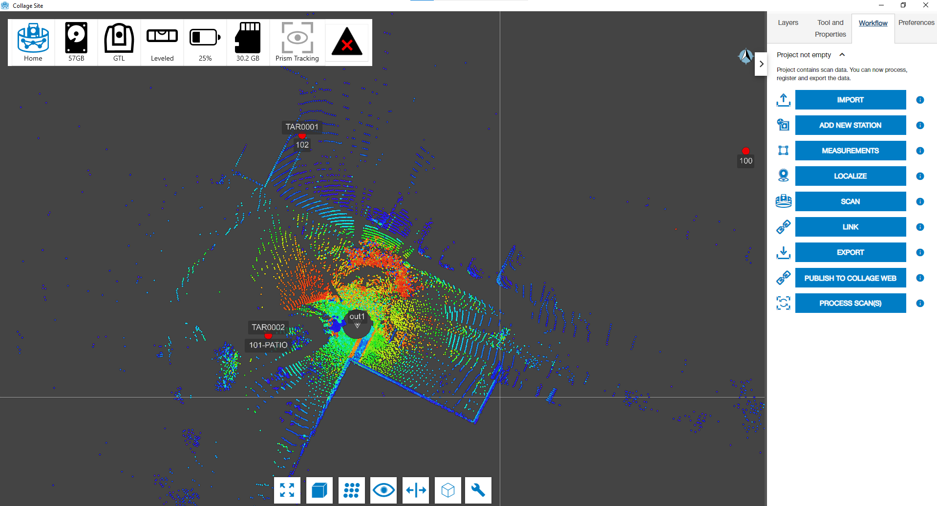 After the scan data is completely transferred, Collage Site will begin processing the scan data so it can be registered and viewed. First the station data will be processed.Then scans will be processed so that you can visualize them and use them for cloud to cloud registration.