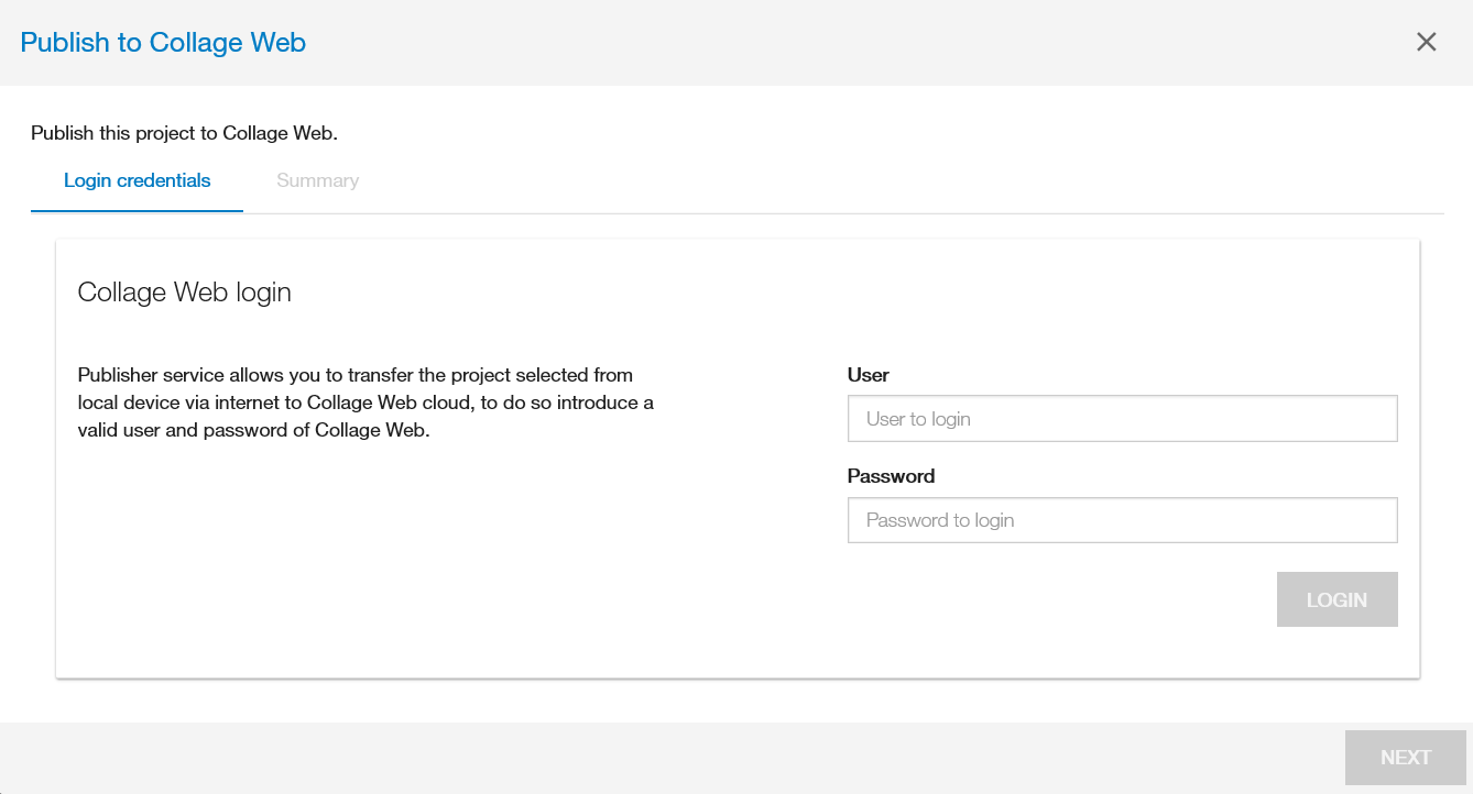 Publish to Collage Web allows you to publish a Collage Site project directly to Collage Web for sharing and viewing on browsers and mobile devices (requires a Collage Web subscription).