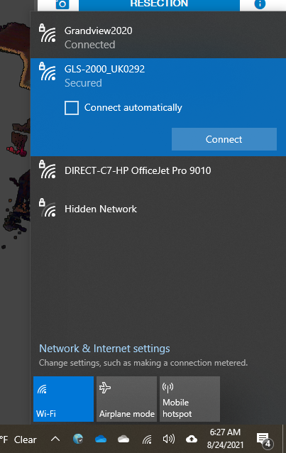 To connect to a GLS series or ESN scanner, first you need to join the scanner’s wireless network using your windows network connection tool: