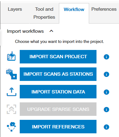 To import references into the project, tap on the Import button in the right workflow panel to open the Import Workflow selector: