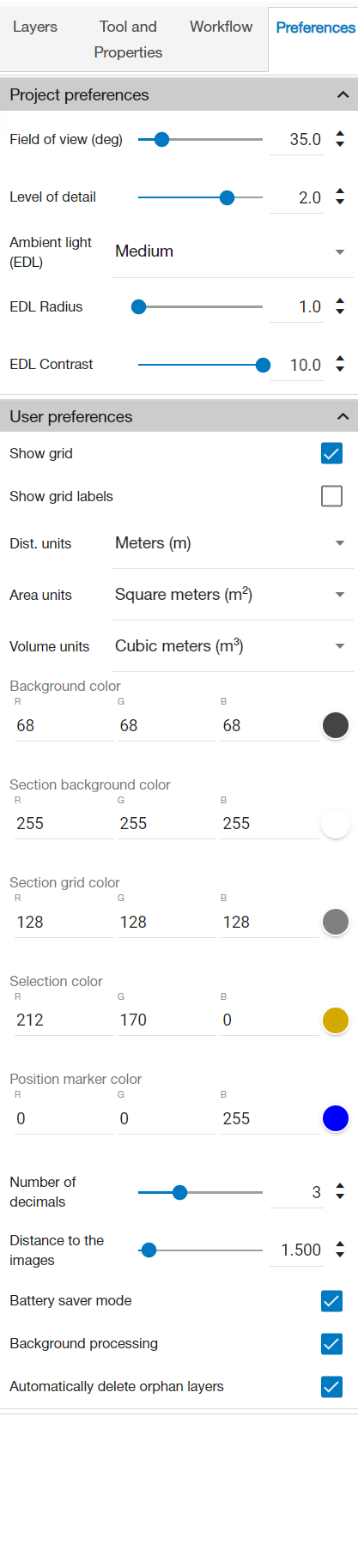 Level of detail - Use this to adjust the quality level of the point cloud in your project.