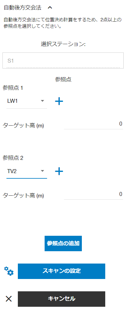 コントロールポイントを選択し、高さフィールドに入力したら、スキャン設定ボタンをタップして続行します。