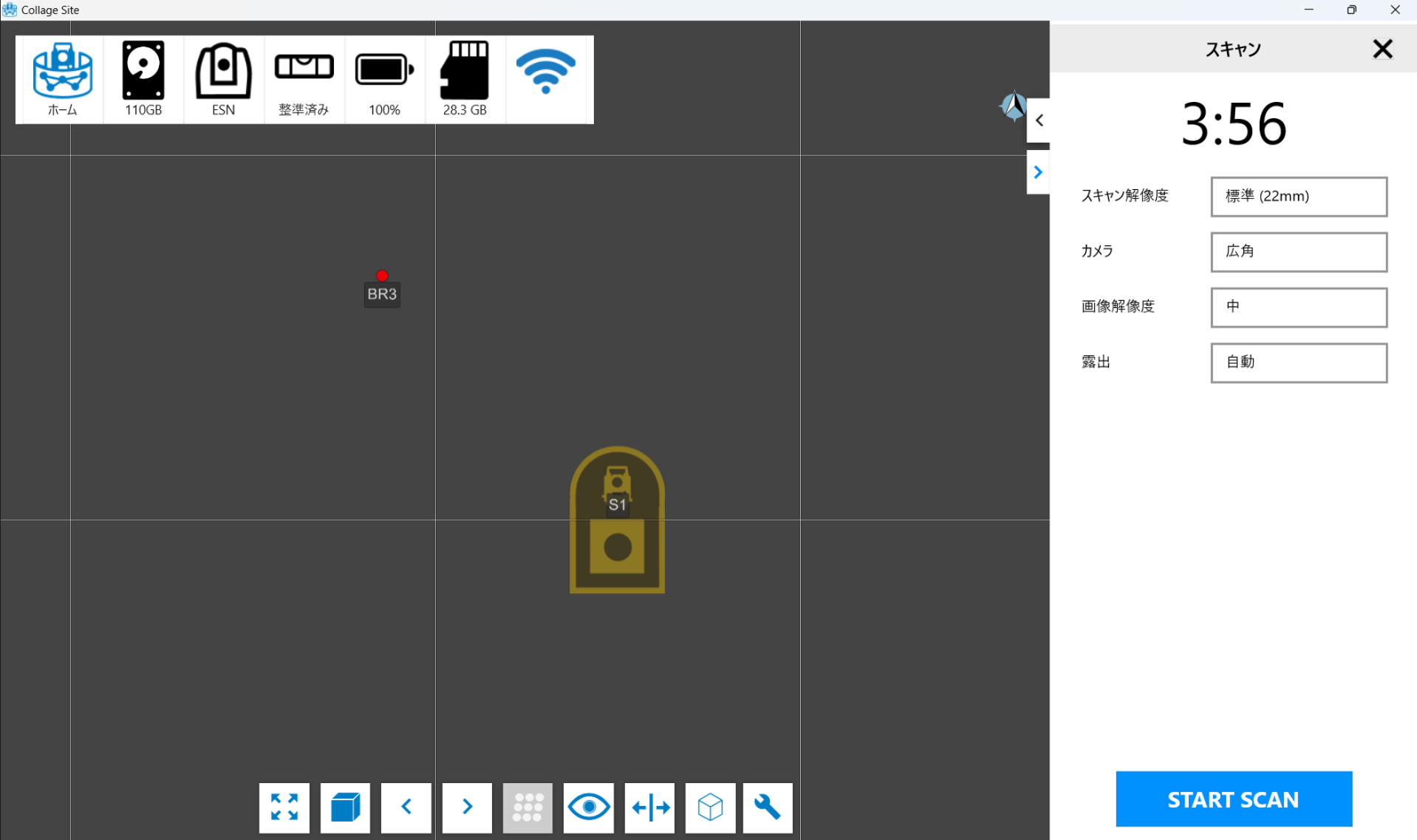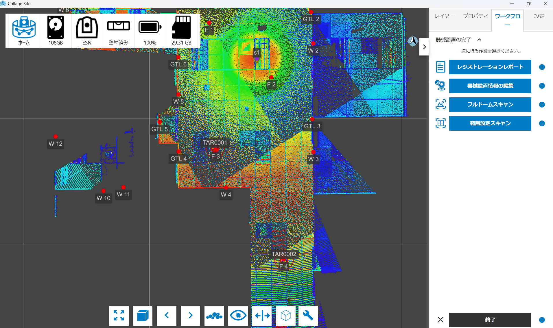 ローカライゼーションを編集したら、新しいパラメーター変更で再セクションを実行するために、変更を適用ボタンをタップしてください。編集が必要ない場合は、承認ボタンをタップしてください。スキャン処理が完了すると、ポイントクラウドデータが表示されます。