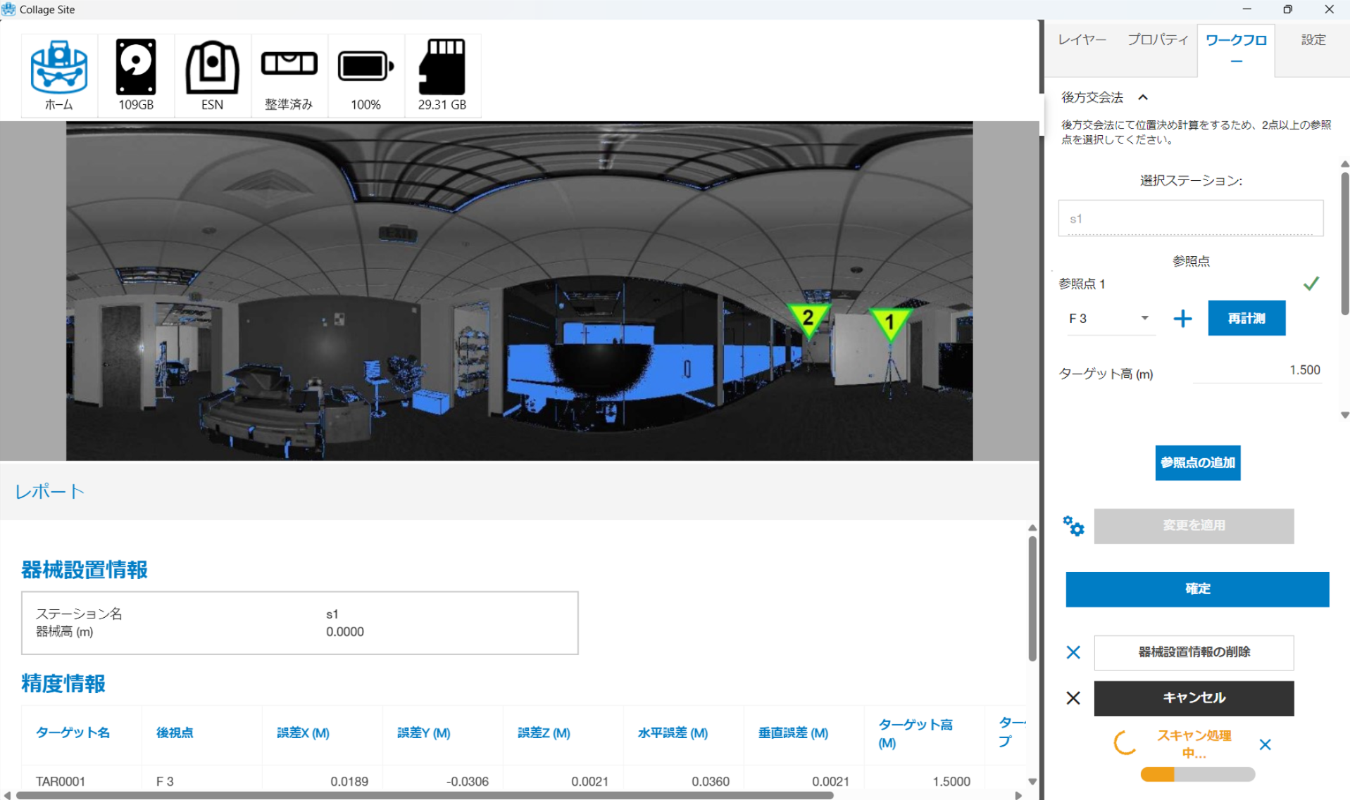 もしターゲットの検出結果が正確でないか、計測位置が正確でない場合は、ターゲットを再計測するか、右側の編集パネルから参照点とターゲットの計測結果を編集できます。