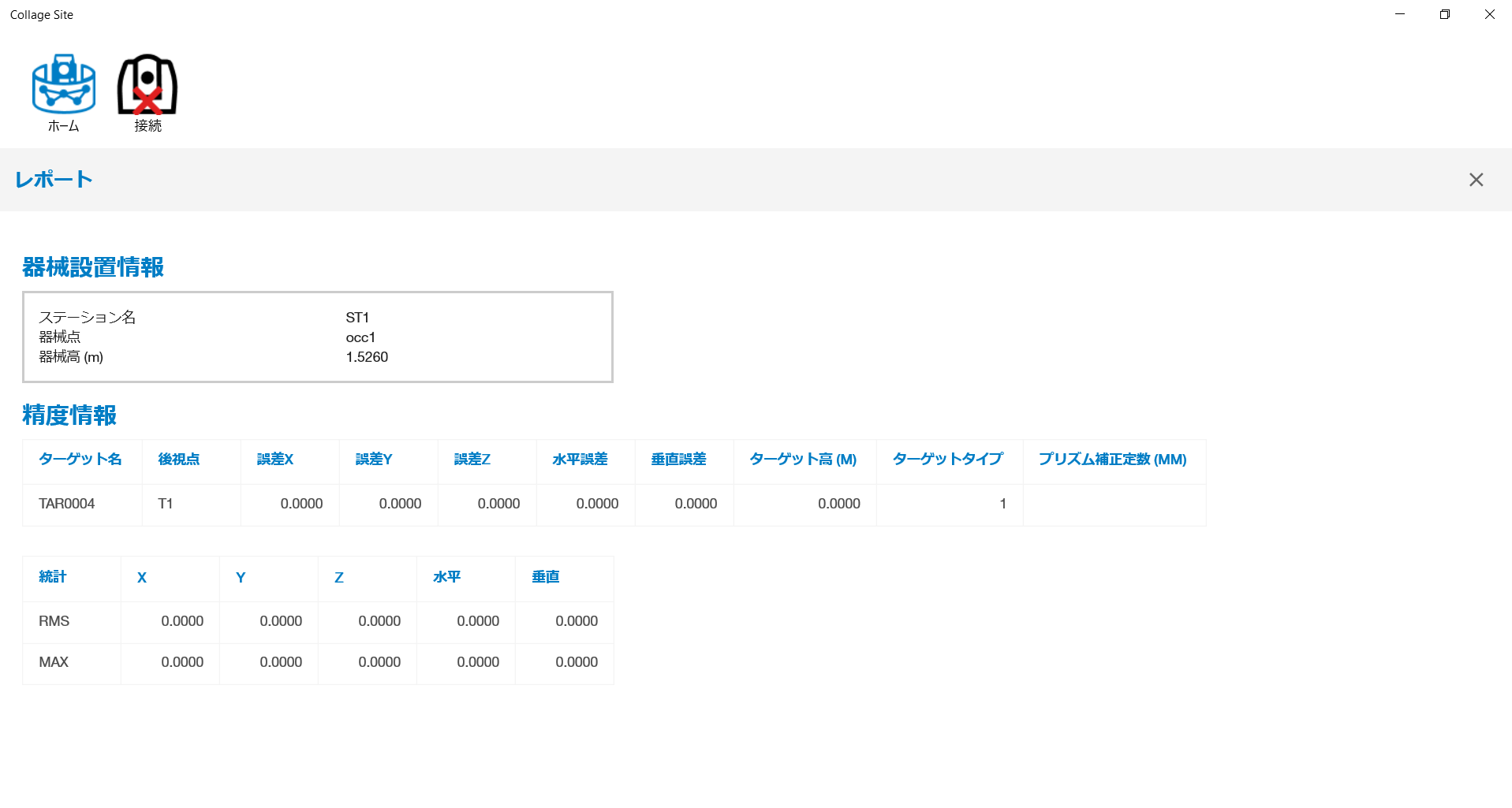右側パネルに、以前に実行した器械設置方法の編集画面が表示されます。下図には、例として後方交会法の編集画面を示します。