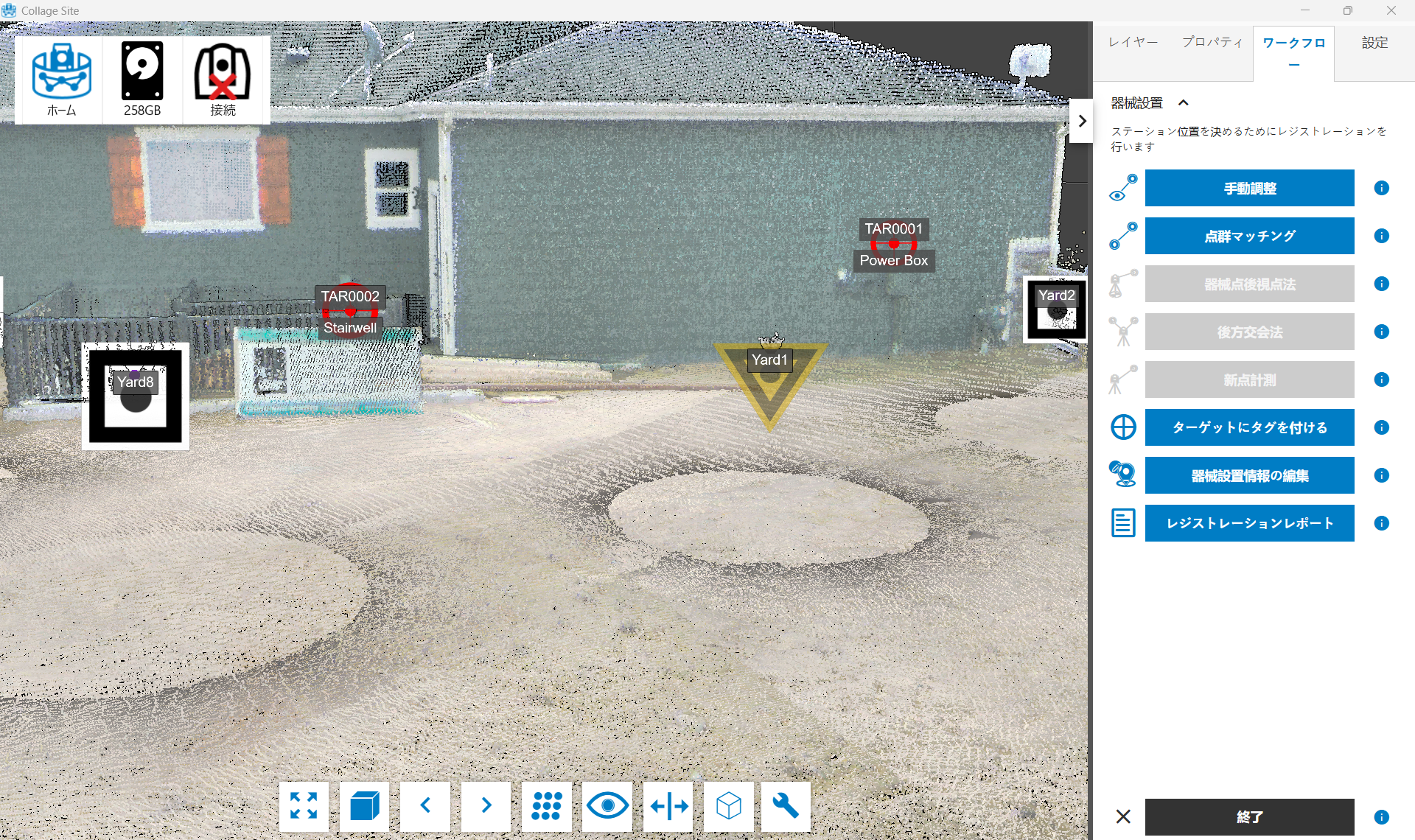 このボタンをタップすると、すぐに選択したステーションのスキャナー・ビューが表示され、キャプチャした画像と点群が重ねて表示される: