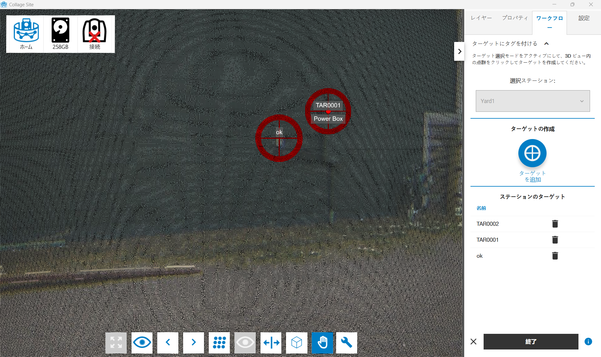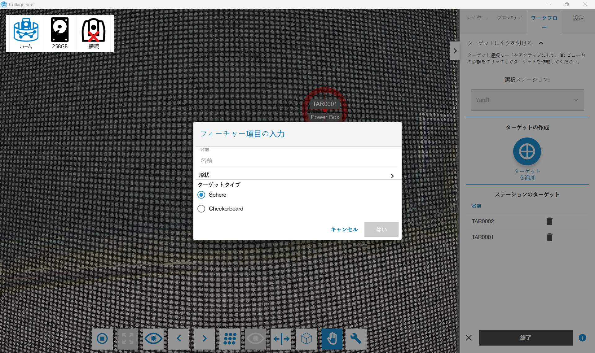 ここから、上のスクリーンショットにあるAdd Targetボタンをタップし、点群内の新しいターゲットを置きたいポイントをタップするだけです。その後、ターゲットの種類と名前を選択するプロンプトが表示されます: