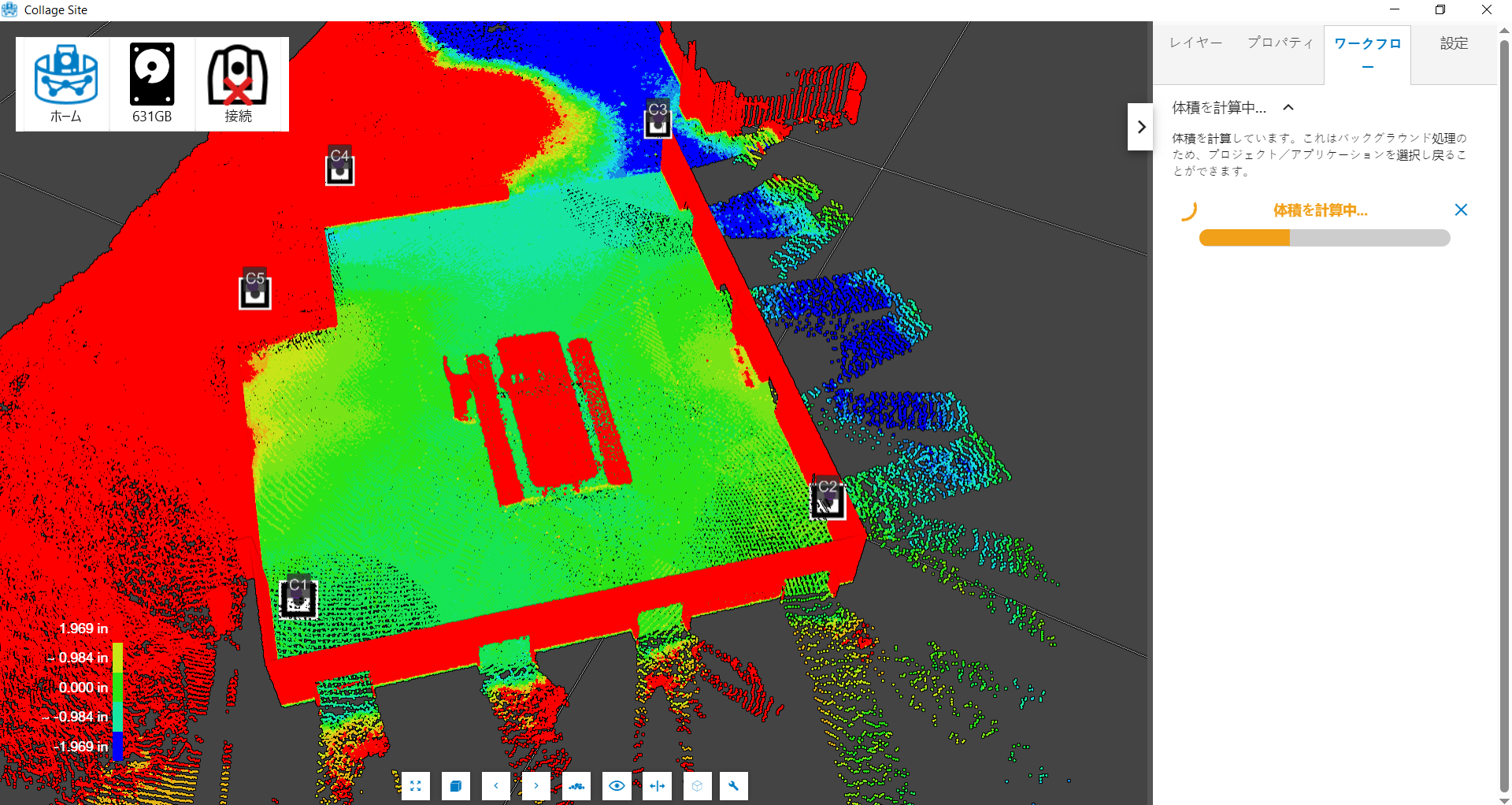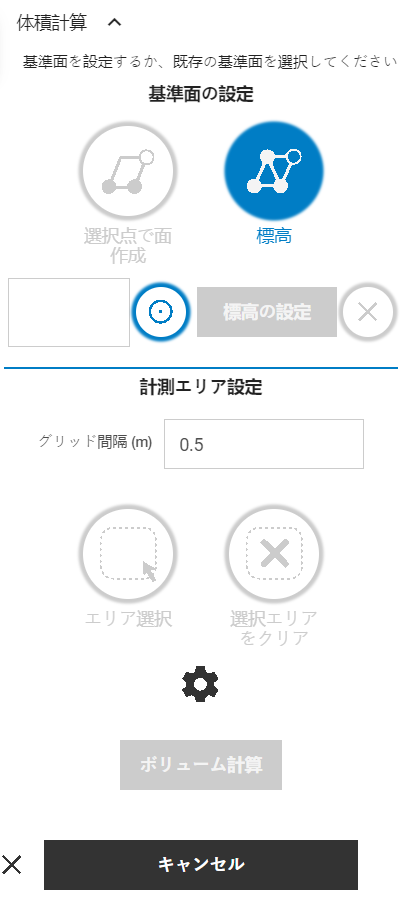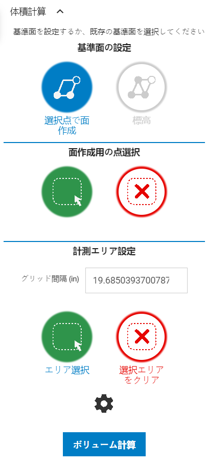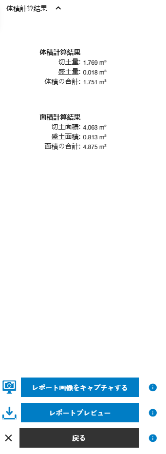 エリア選択が完了したら、体積計算ボタンをタップして分析を実行します。