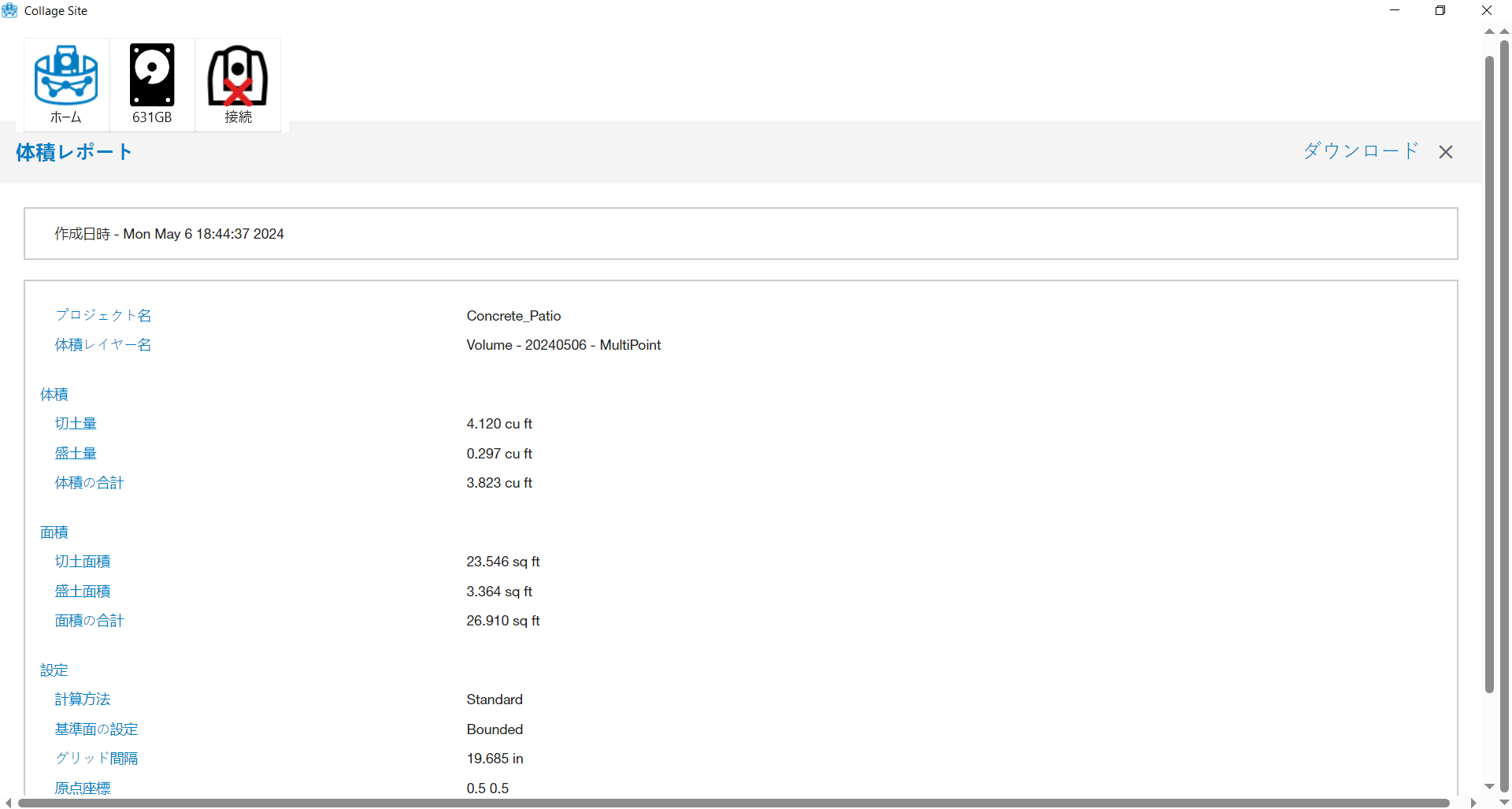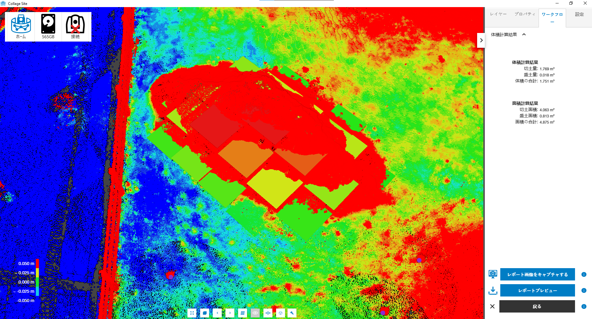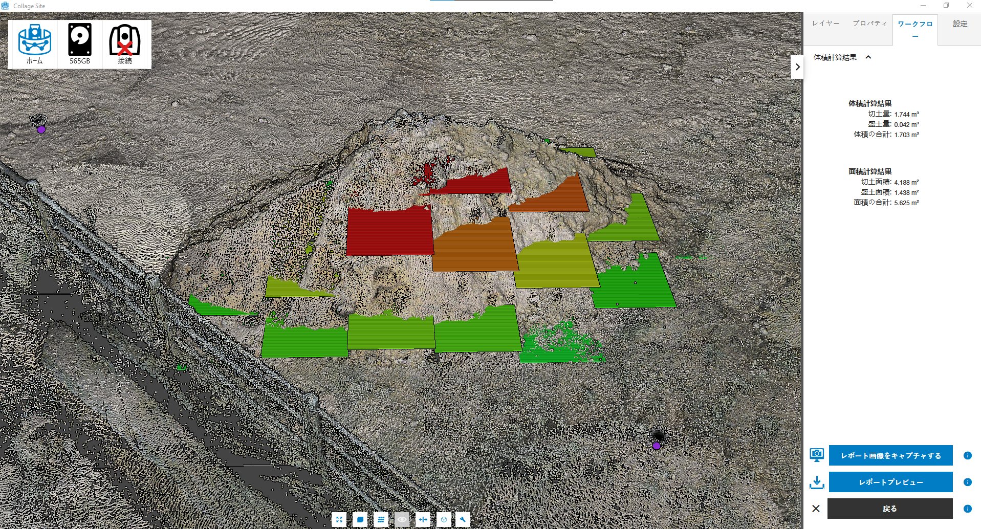 選択が完了したら、体積計算ボタンをタップして分析を実行します。完成したレポートの画像はこちらになります。