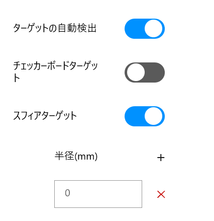 最後に、CR-P1 デバイスを使用する際、ターゲットの自動検出 トグルが表示されることに気付くでしょう。このトグルをオンにすると、直前に撮影したスキャンにチェックボードまたは球体ターゲットが検出された場合、Collage Site で自動的にターゲットレイヤーを検出・作成します。球体ターゲットを使用する場合、各球体ターゲットの半径に関する詳細情報を入力する必要があります。