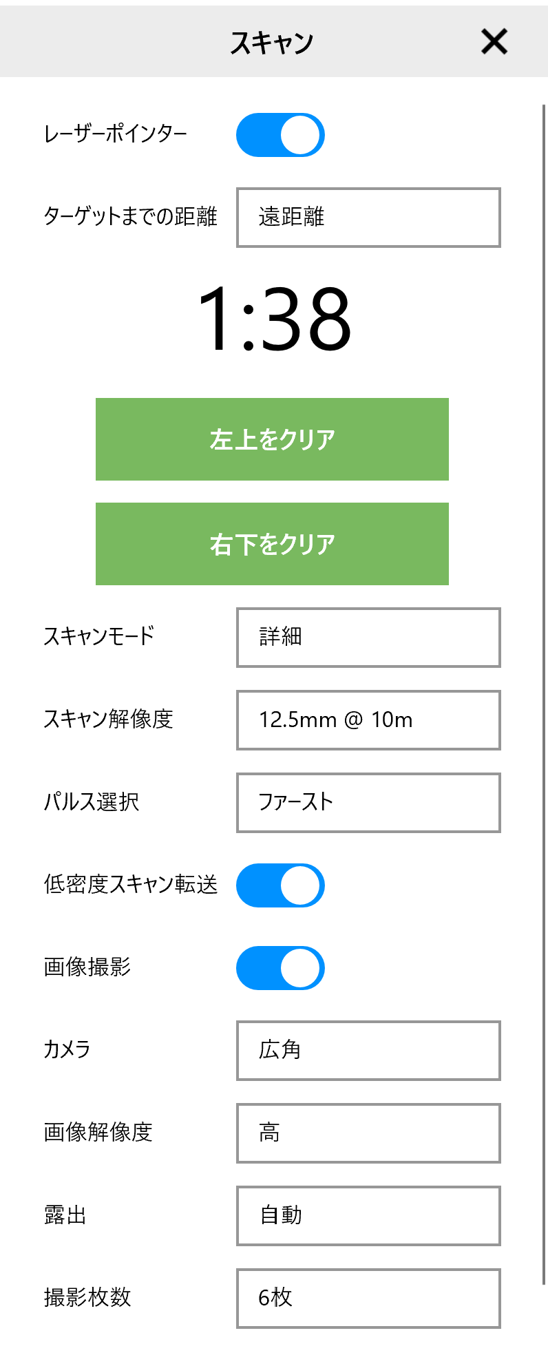 範囲設定スキャンでは、矩形によりスキャン範囲を指定して、その範囲内だけをスキャンしデータを取得できます。スキャン範囲はスキャナ―のカメラ画像を利用して指定します。範囲設定スキャンは、必要な箇所だけを迅速にスキャンするため、全体のデータ量を低減でき、さらには、点群生成やノイズ除去などの処理時間も削減できるため効率的です。