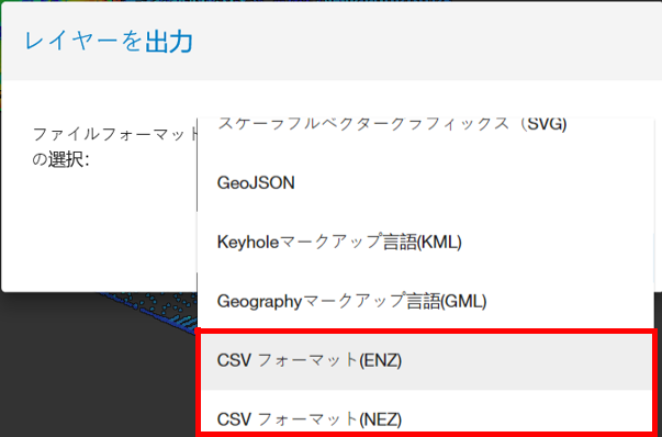 ファイル形式選択ダイアログが表示されるので、CSV形式を選択します。