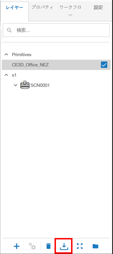 プロジェクトから基準点を出力するには、まず右パネルの レイヤー タブを表示し、基準点データが含まれるレイヤーを選択します。次に レイヤー出力 をタップします。