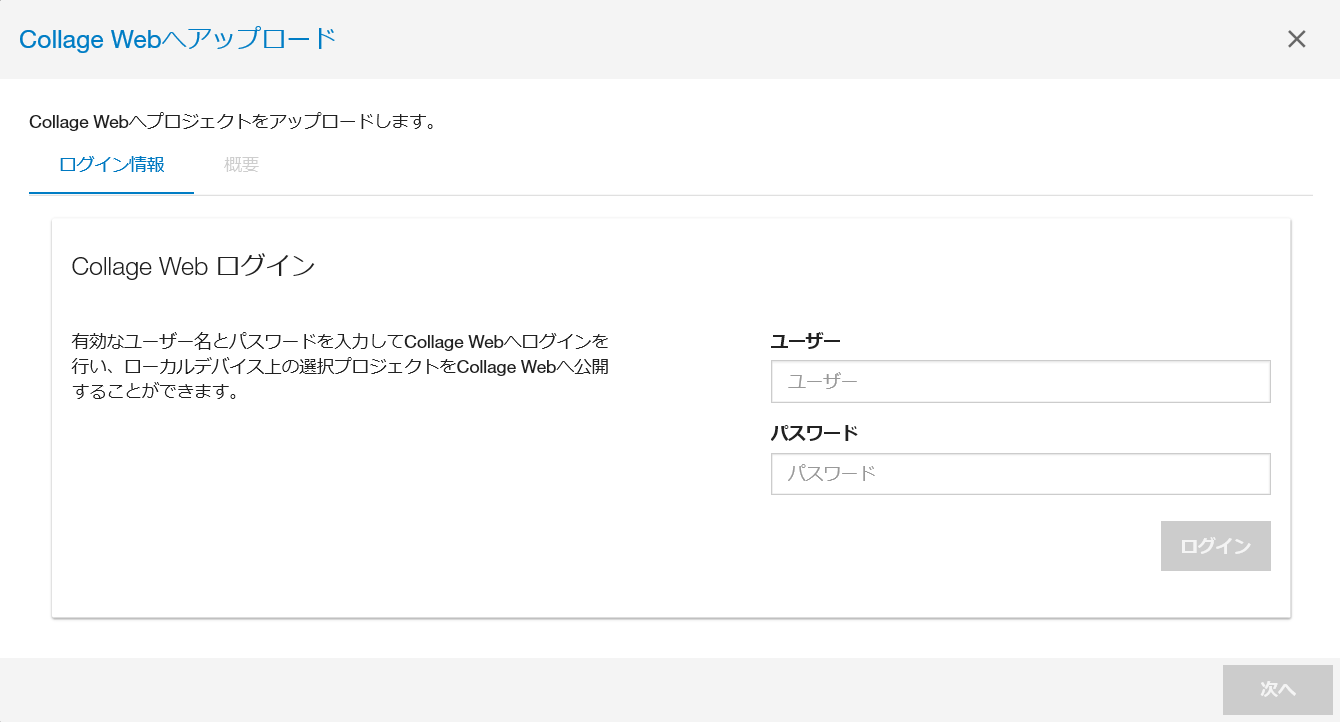 Collage webへのアップロード機能を使用する場合、Collage Webアカウントタイプが管理者である必要があります。
