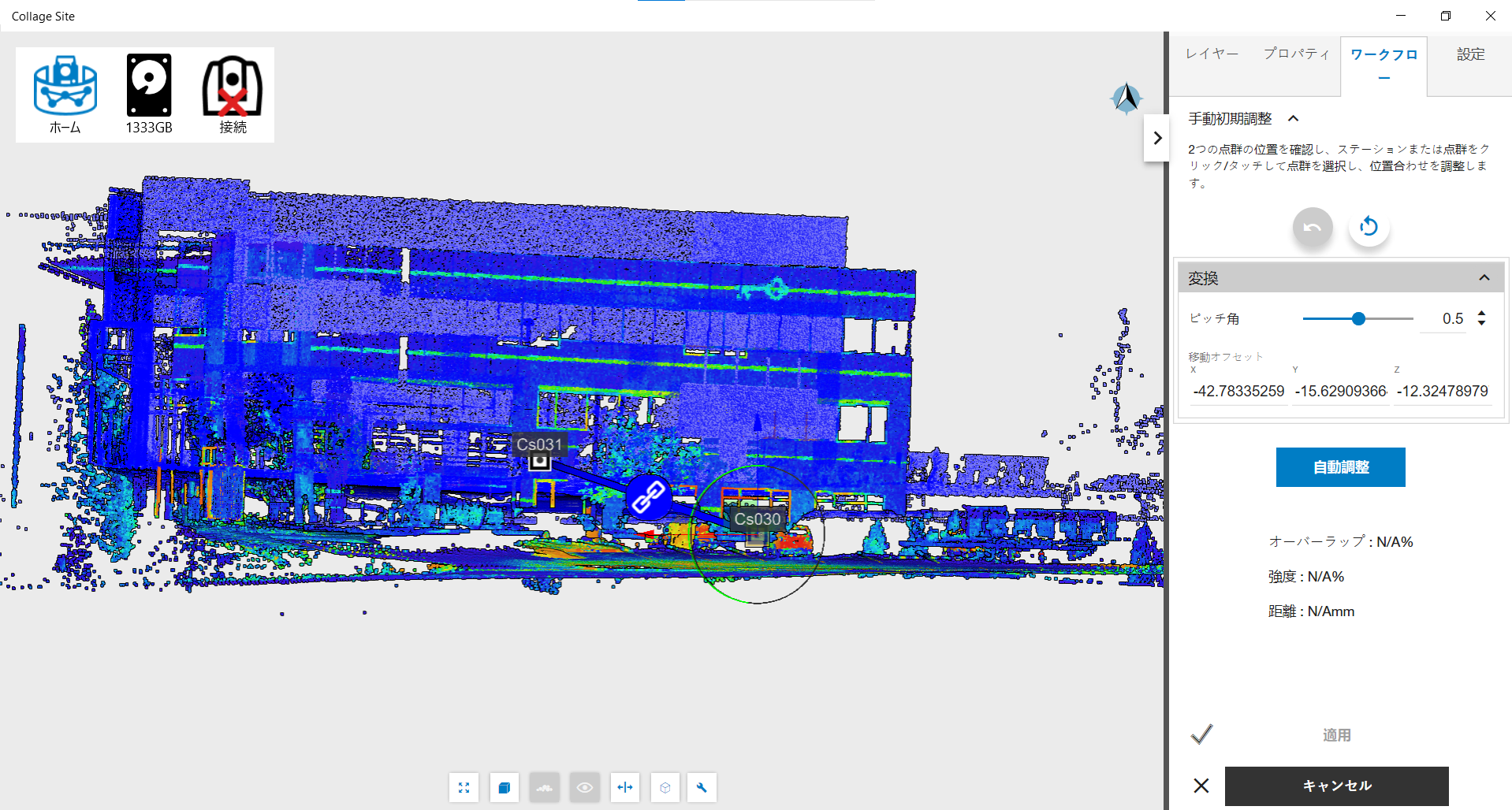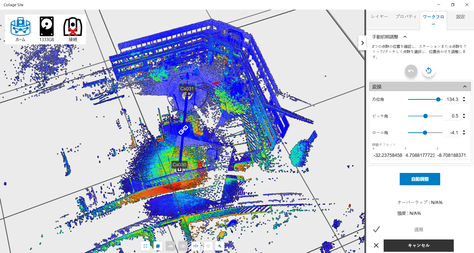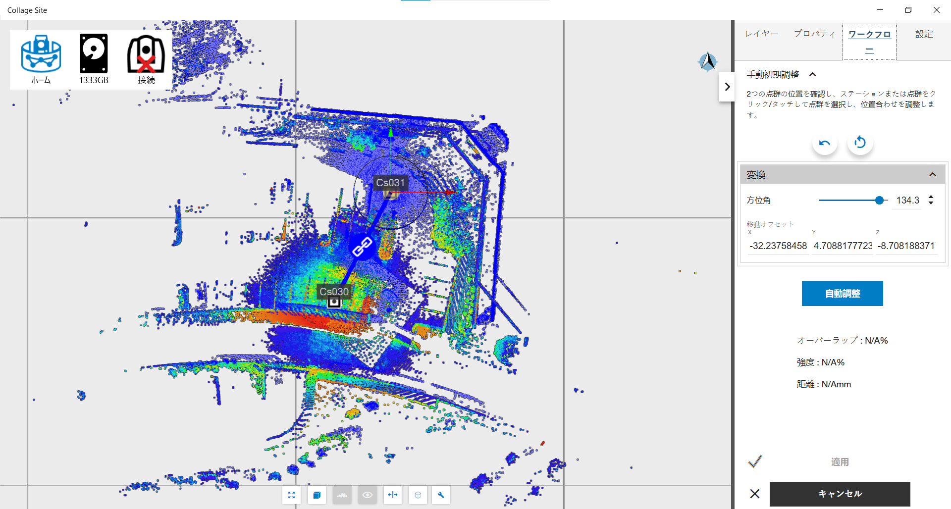 ステーションを大まかに調整したら、自動調整ボタンをタップして、手動調整したステーション位置に基づいて点群マッチング処理を実行できます。