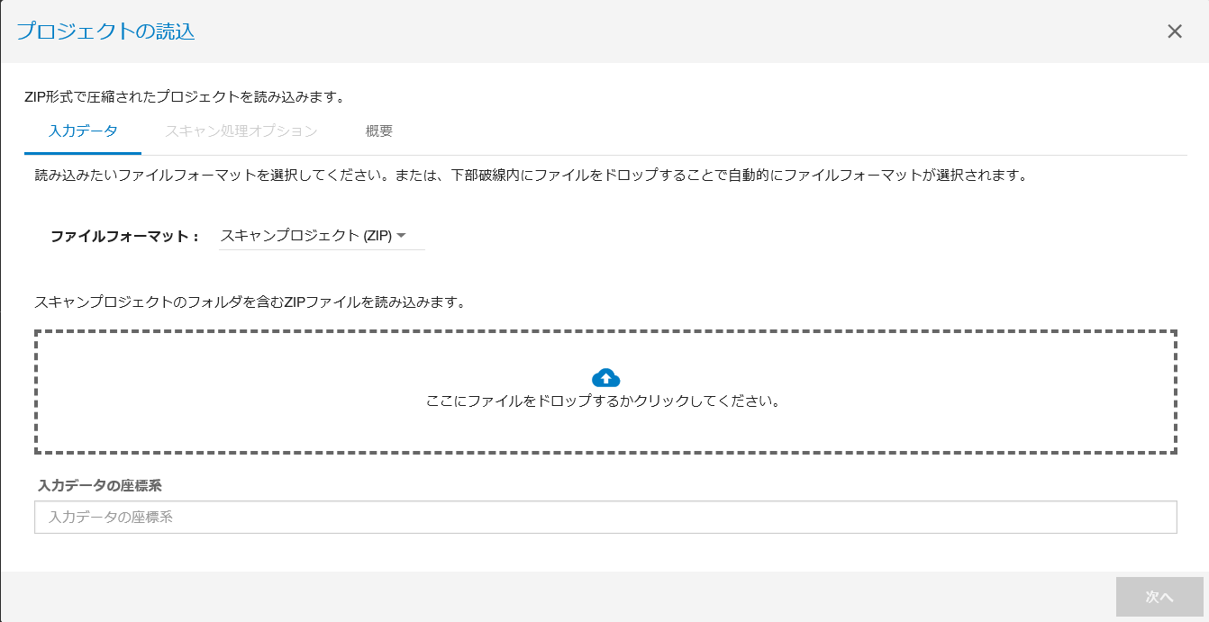 ※MAGNET Collage、またはトプコン製スキャナ―のオンボードソフトで取得した点群データのみ正しく読み込みます。但し、測量基準点を用いた器械設置情報を引き継ぐことはできません。