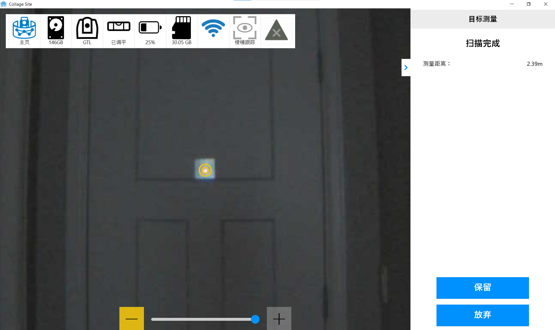 完成目标测量后,使用 GTL-1200 的摄像头图像或远距离瞄准镜仔细检查扫描仪是否正确测量了目标。此外,测量成功后,Collage Site 的屏幕应放大目标。如果成功,请选择保留选项。否则,选择丢弃选项重试。