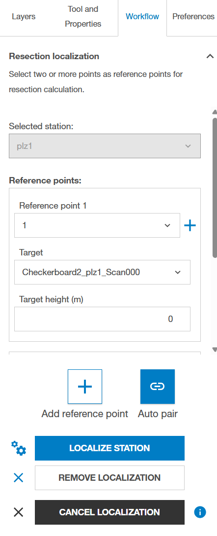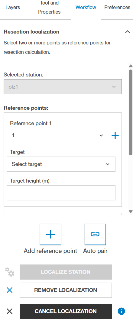 Upon completion you should notice that the Target field in the Resection workflow panel should have automatically been filled in with the corresponding targets in your Collage Site project, and that the Localize Station button is now lit up and ready to use. It is always best practice to manually check that these targets have been associated correctly.