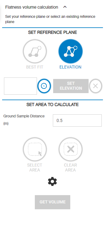 To do this you can either manually type an elevation value into the blank text box, or use the point selection button by tapping it and then tapping a point in your point cloud. Once the desired elevation reference plan is set tap SET ELEVATION. After the reference plane is established tap the SELECT AREA button if it has not been automatically selected for you. Using a series of taps draw a polygon around the location you wish to have your cut\fill volume calculated.
