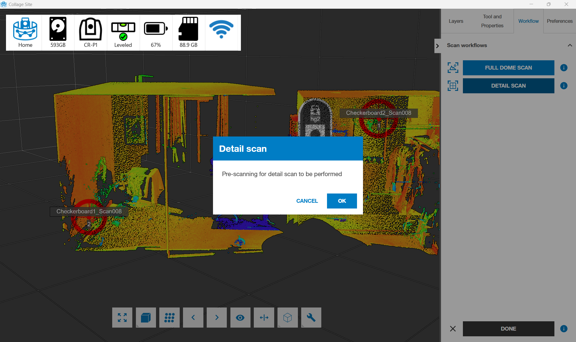 As soon as you tap the Detail Scan button in the Scanning workflow menu, the following dialog will appear: