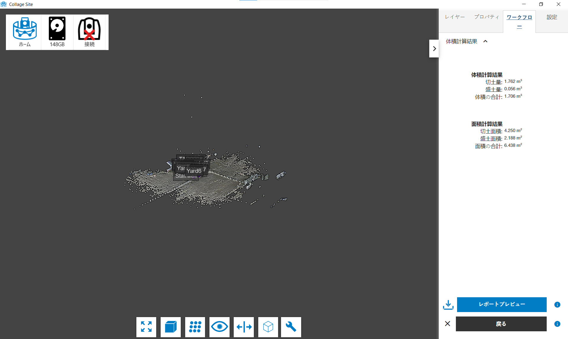 選択が完了したら、体積計算ボタンをタップして分析を実行します。完成したレポートの画像はこちらになります。