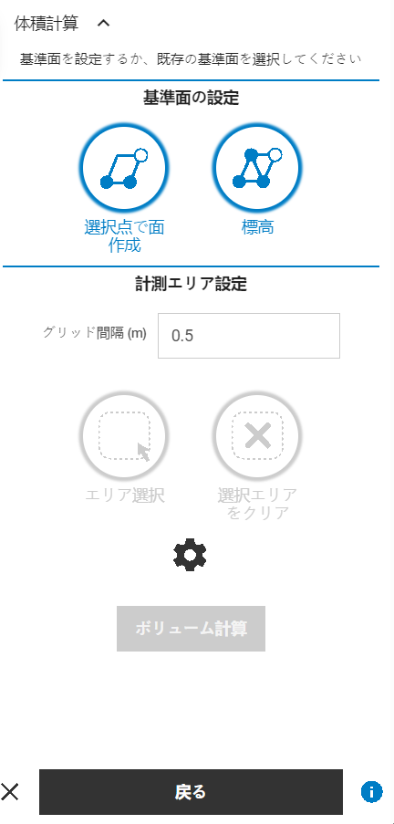 エリア選択が完了したら、体積計算ボタンをタップして分析を実行します。