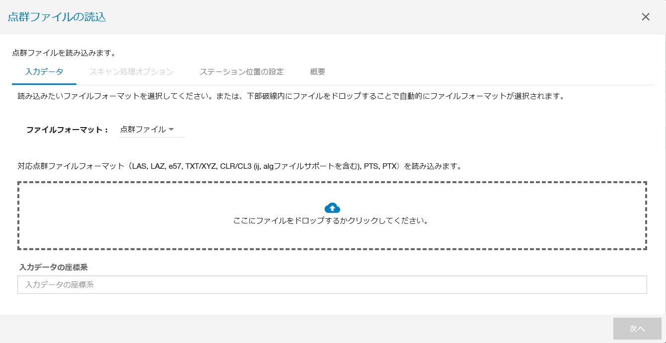 この機能を使用することで、点群ファイルをステーションとして読み込むことができます。